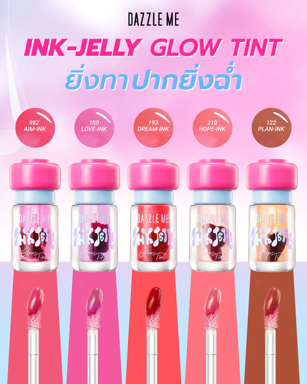 Dazzle Me Ink-Jelly Glow Tint 3.2g #105 This lip tint has a smooth, soft texture, intense pigments, and is long-lasting. It provides beautiful, vibrant color and keeps your lips moisturized, plump, and shiny.