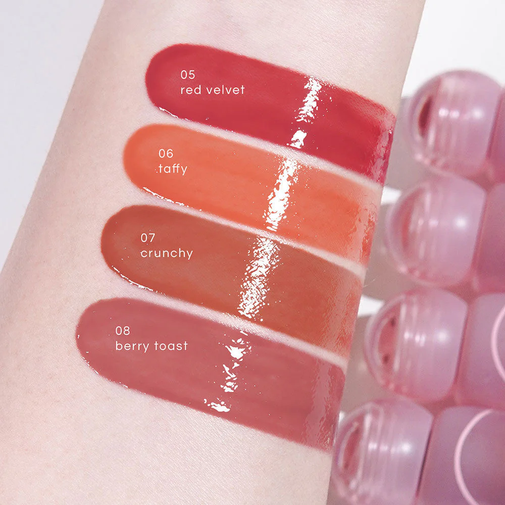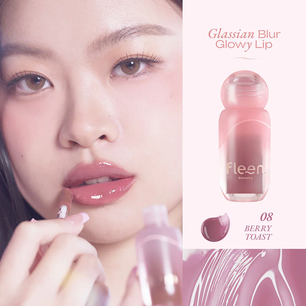 Fleen Beauty Glassian Blur Glowy Lip 3.2g #08 Berry Toast Glow Lip Tint, a new form of Emulsion that combines Lip Oil and Lip Tint. It feels light and comfortable, not sticky. It combines nourishment from Syn®-Coll (Collagen Booster) to help fill in lip lines. STIMU-Tex® As, Seaberry Extract, Oil Blend, and Aquaporin help lock in moisture and restore lips to look full and healthy.