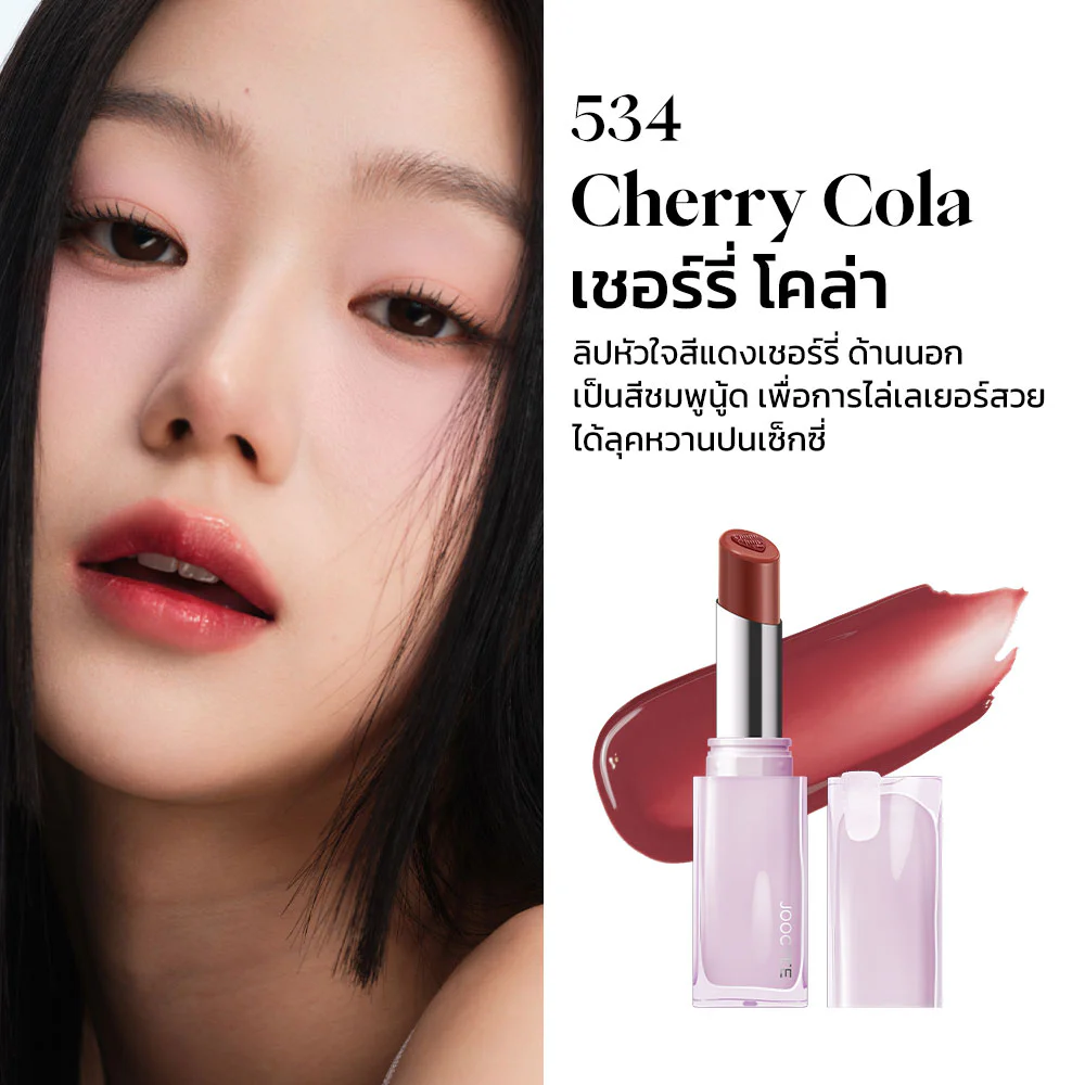 JOOCYEE Glazed Rouge 3g #534 Cherry Cola Chupa Chups lip gloss, heart-shaped gradient design, creamy texture, smooth touch, easy to spread, not sticky, long-lasting, comfortable on the lips, beautiful color, nourishes the lips to be moist, giving beautiful, plump, juicy lips.