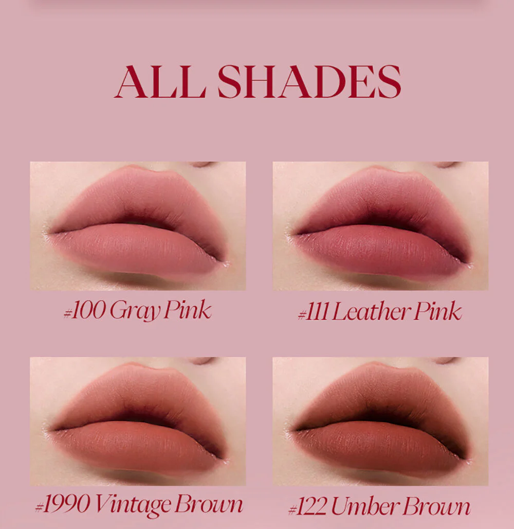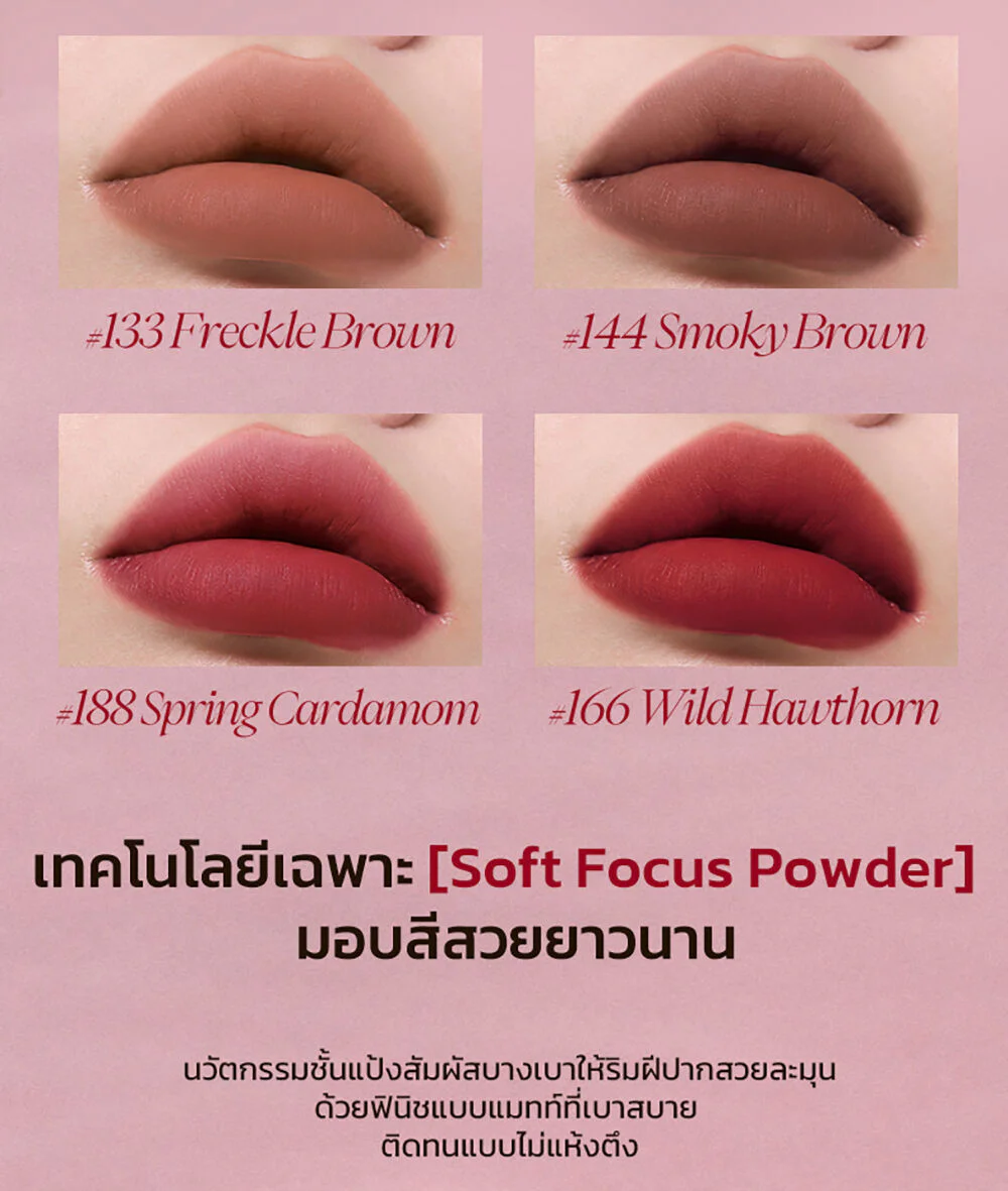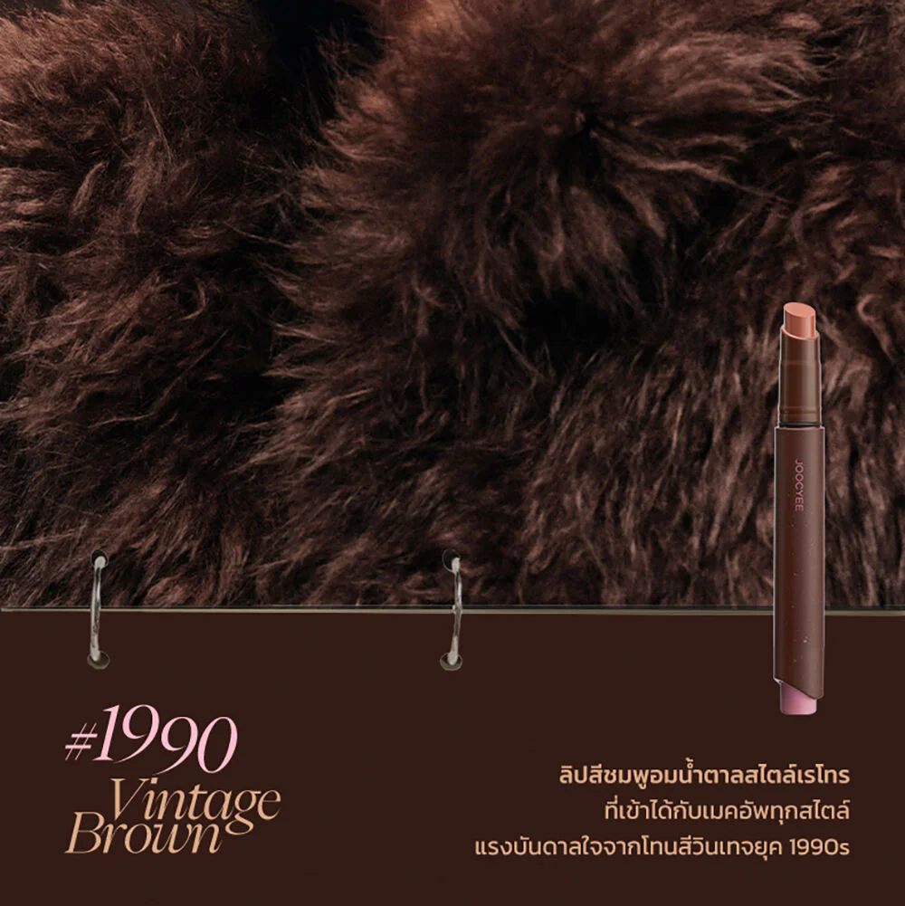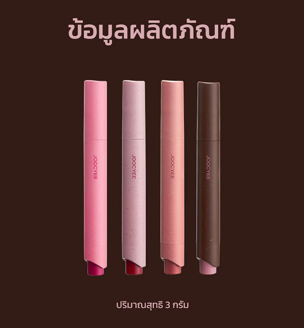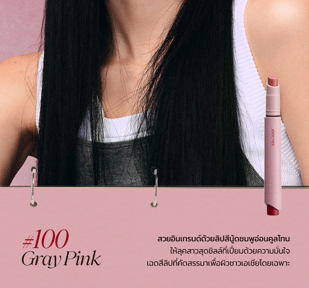 JOOCYEE Velvet Rouge 3g #100 Gray Pink Soft matte lip in a press pen form, comes in a concept of vintage tones that are super chic, super soft with brown-pink tones, soft velvet texture, comes with the innovation 0-Sensation Lip Coating, light touch like weightless, easy to apply, comfortable on the lips, beautiful, clear lip color from the first touch, the color is true to the cover, beautiful application even with dark lips, beautiful and smooth on the lips, adheres perfectly, no smudging, does not make you feel dry and tight, gives the lips a soft, smooth look, beautiful shades, complete, easy to choose, can be used on all skin tones