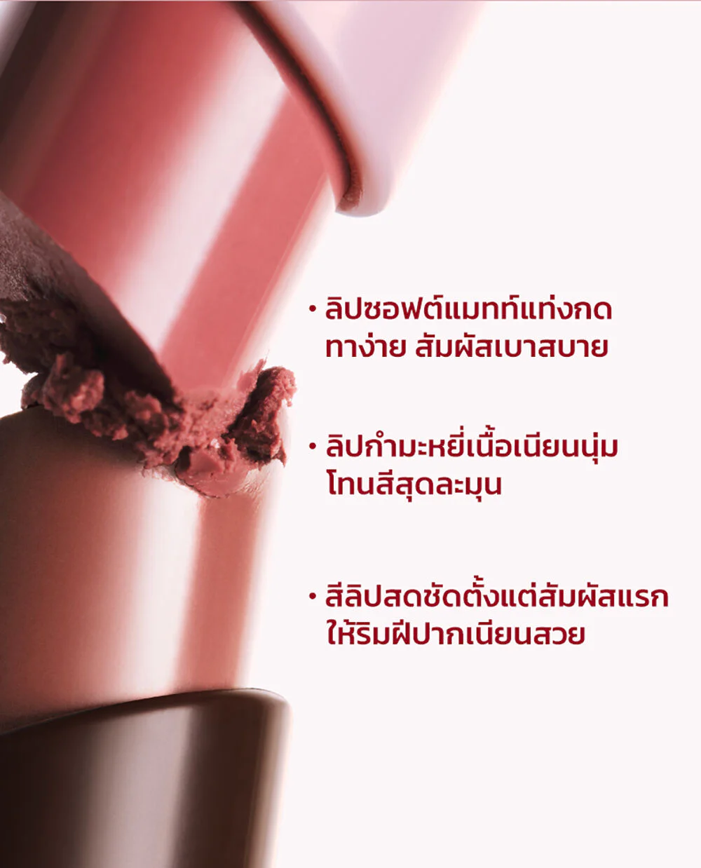 • Soft matte lipstick, pressed, velvety texture