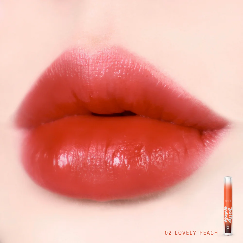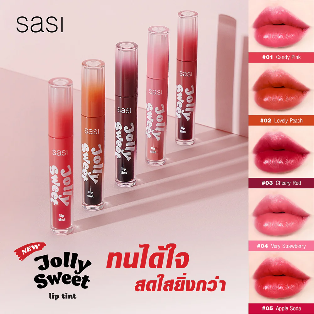 SASI Jolly Sweet Lip Tint 3g #02 LovelyPeach funbrightUnique with water-based lip tint formula, dense textureClear colorLong-lastingLight and comfortable on the mouthJust one swipe will last all day.Ready to nourish and moisturize your lipsSoftLook plump with glycerinand aloe veraAdd some fun by applying a touch of cheek tint.Help complete your look to be beautiful and fresh all day long.