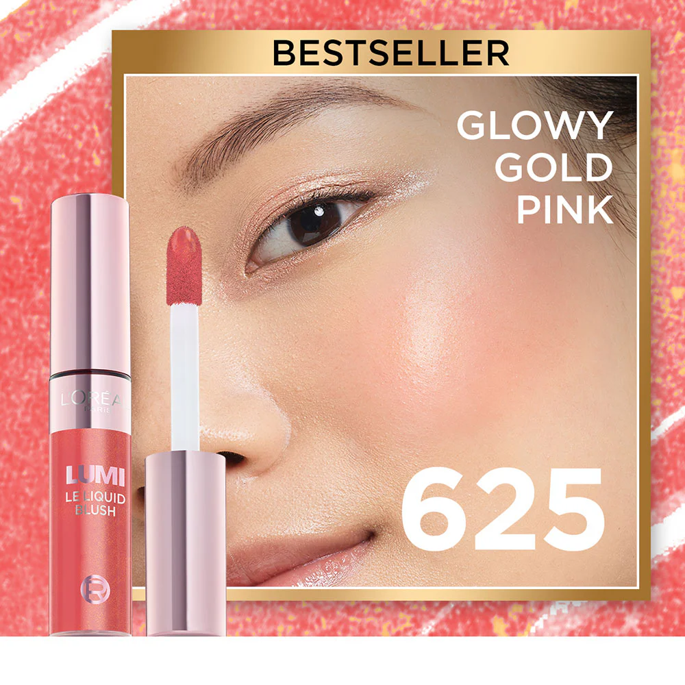 L'Oréal Paris Lumi Le Liquid Blush 11ml #625 Glowy Gold Pink The latest collection of liquid blush for glowing cheeks, comes in a range of colors from bright pink blush and deep orange blush to pinkish nude and berry blush for beautifully glowing cheeks that feel light on the skin.