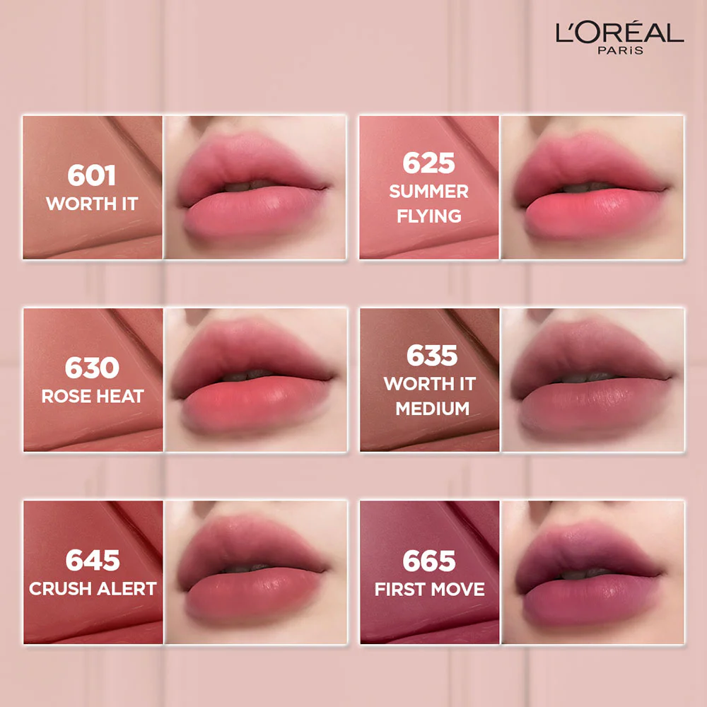Loreal Paris Infallible Matte Resistance 5g #665 First MoveMatte lipstick with hyaluronic acid, long-lasting, vivid color, dense pigments, light texture, easy to spread, comfortable on the lips, not sticky, not sticky, provides moisture, makes the lips feel plump, no more worries about the color fading during the day. Comes with a new package and brush head, one swipe is firmly attached.