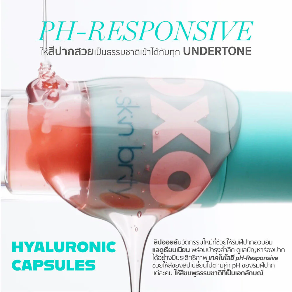 SKIN BRITY XOXOil Hya Capsule Lip Oil 5g #Berry Swirl Lip oil Hyaluronic capsule, light texture, not sticky, gives a cool and refreshing feeling when applied. Combined with natural extracts, it helps nourish the lips to be soft, moist, and adjusts the color shade according to the pH value of the lips. And has color lock technology to be beautiful all day long, giving a unique look that looks natural.