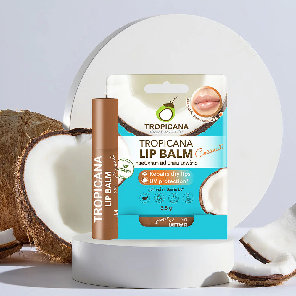 Tropicana Lip Balm 3.8g #Coconut Coconut Oil Lip Balm is rich in organic cold-pressed coconut oil, cocoa butter and shea butter to help nourish dry and cracked lips and restore moisture. With vitamin C and vitamin E, it helps to make lips soft and healthy.