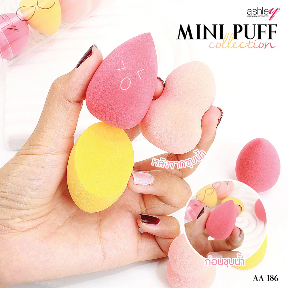 Ashley Mini Puff Collection 3pcs Set of 3 makeup sponges, soft sponges, dense texture, high flexibility. Blend the texture of the makeup smoothly onto the skin. longer lasting and not stain