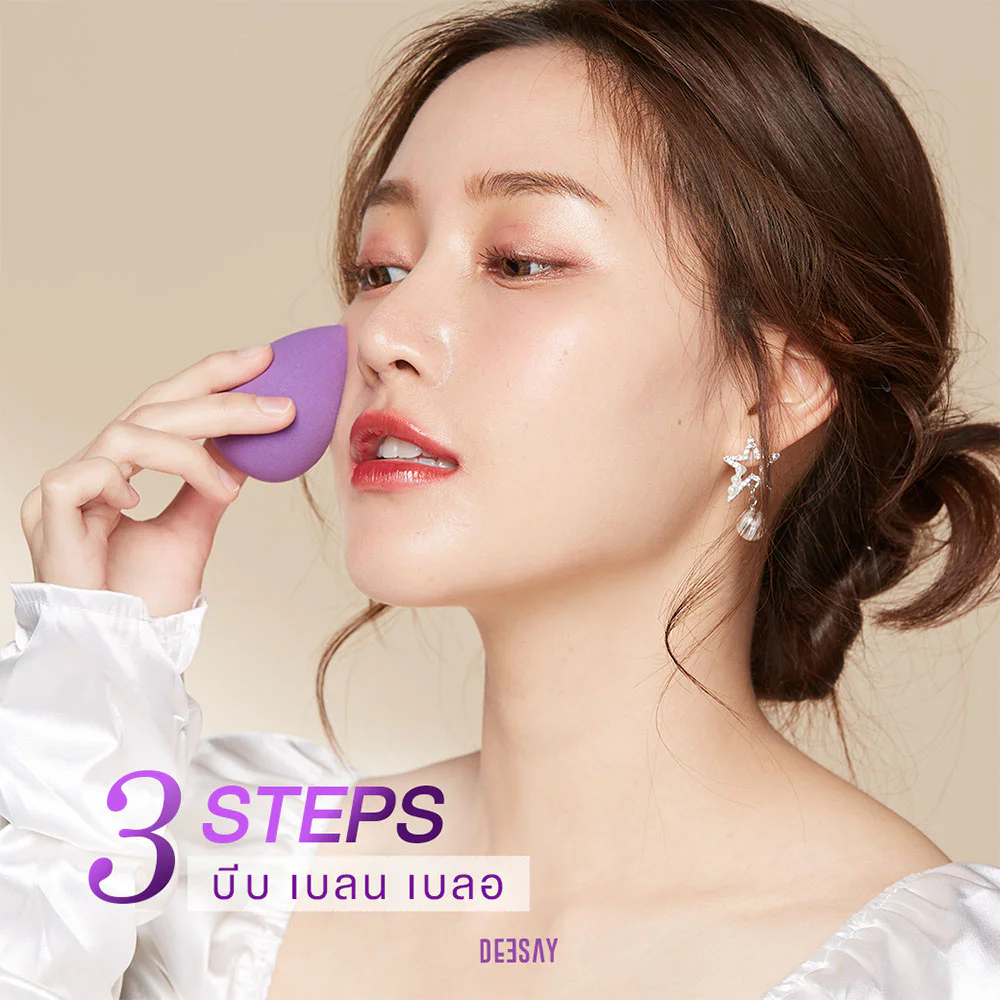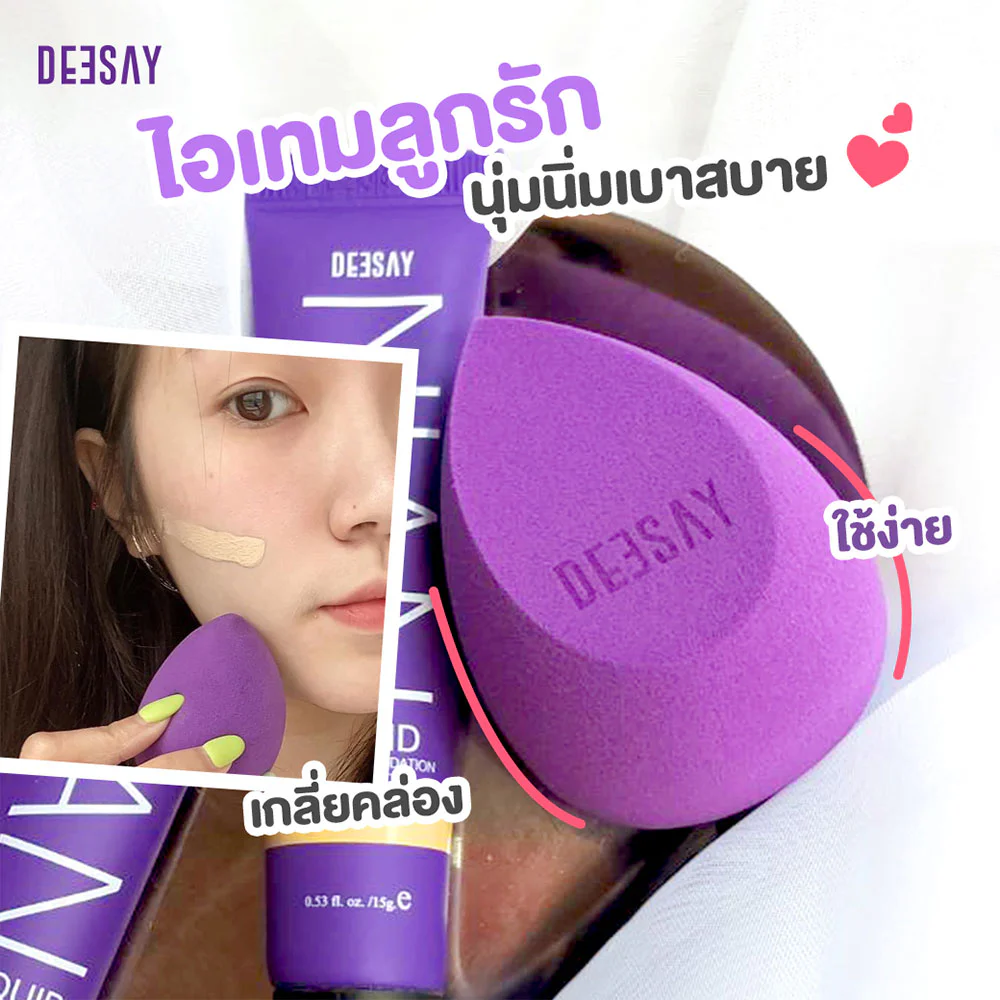 Deesay Pudding Sponge 13g Makeup sponge, extra soft texture, does not absorb foundation, can be used both dry and wet, suitable size, soft and bigger when wet, helps spread foundation or cream products, smooth makeup like a professional.