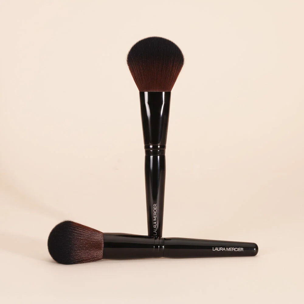 Laura Mercier Powder Brush 1pc A large powder brush made from high-quality synthetic bristles that is soft to the touch and won't irritate the skin. Designed with a large, round brush head, it allows for even application of powder all over the face, both in large areas and in small spots. It comes with an ergonomic handle for a comfortable grip, allowing you to create a smooth, beautiful complexion that blends with every makeup look.