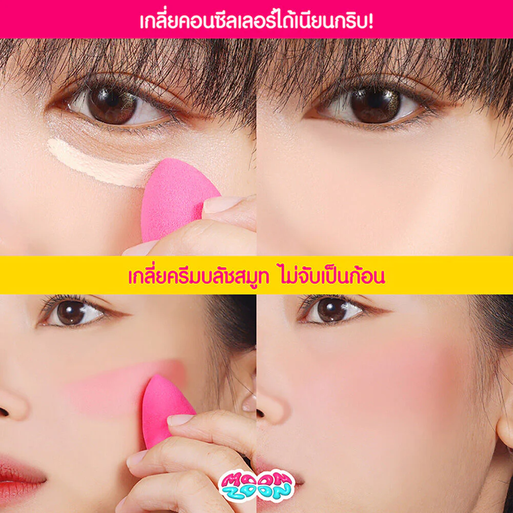 Moonzoon Duo Airy Blender 2pcs A versatile latex-free makeup sponge duo that applies medium coverage foundation with a sheer, airy finish. Ideal for dewy finish products for a dewy finish.