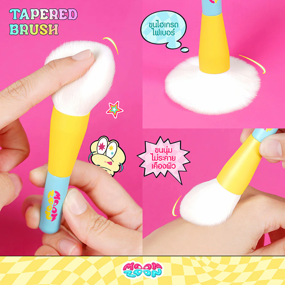 Moonzoon Tapered Brush 1pc Handmade dome-shaped, tapered-tip makeup brush for applying or tapping blush, highlighter, and powder. High-grade fiber hair is soft to the touch and does not irritate the skin. It picks up color and blends products well. It is portable and convenient.
