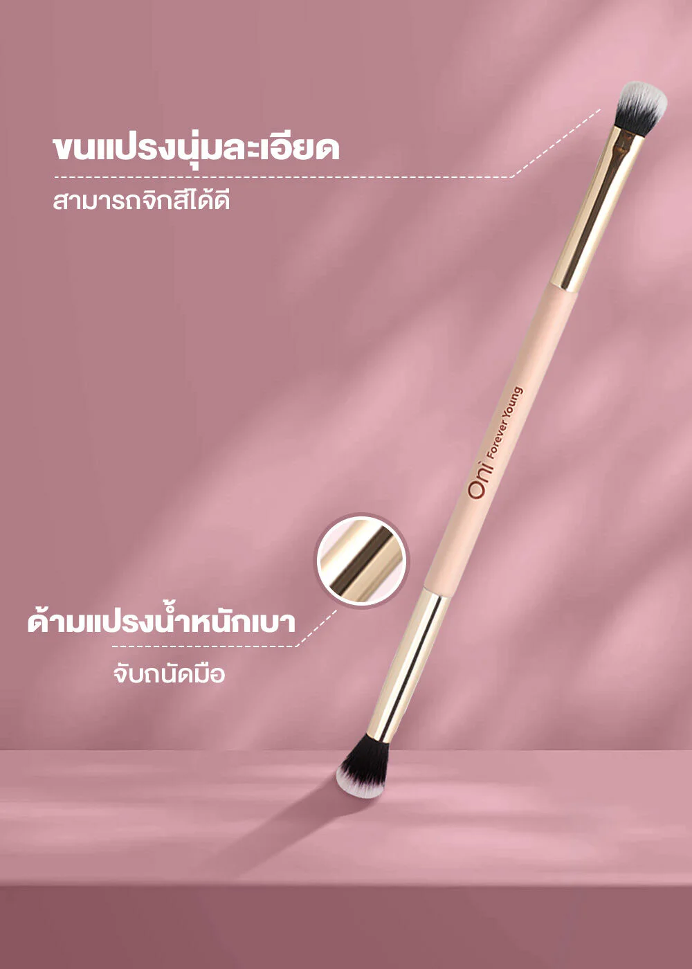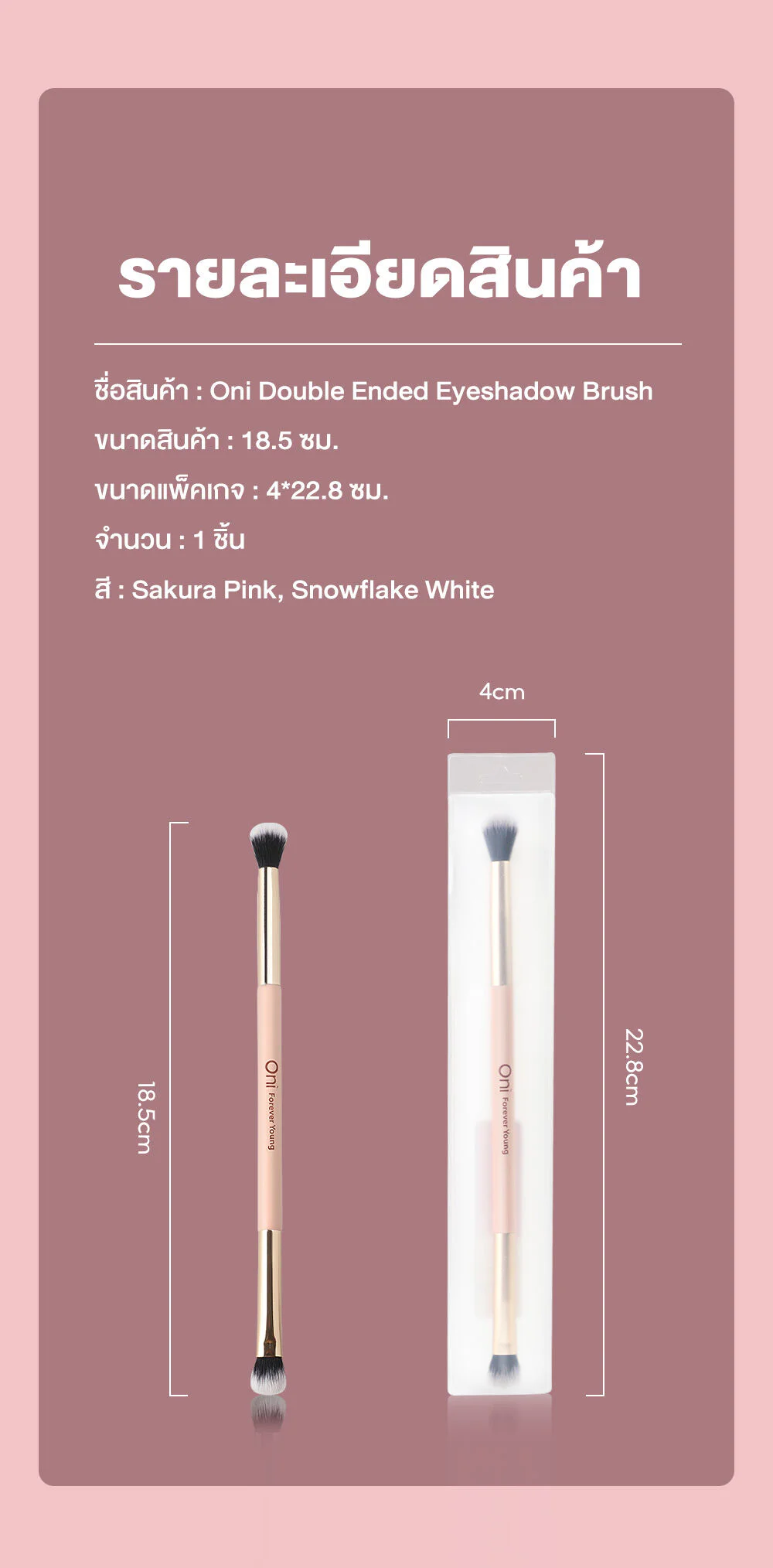 Oni Double Ended Eyeshadow Brush #Snowflake White Double-sided eyeshadow brush with synthetic hair that feels soft and doesn't hurt or irritate the skin. Lightweight brush handle that fits in your hand.
