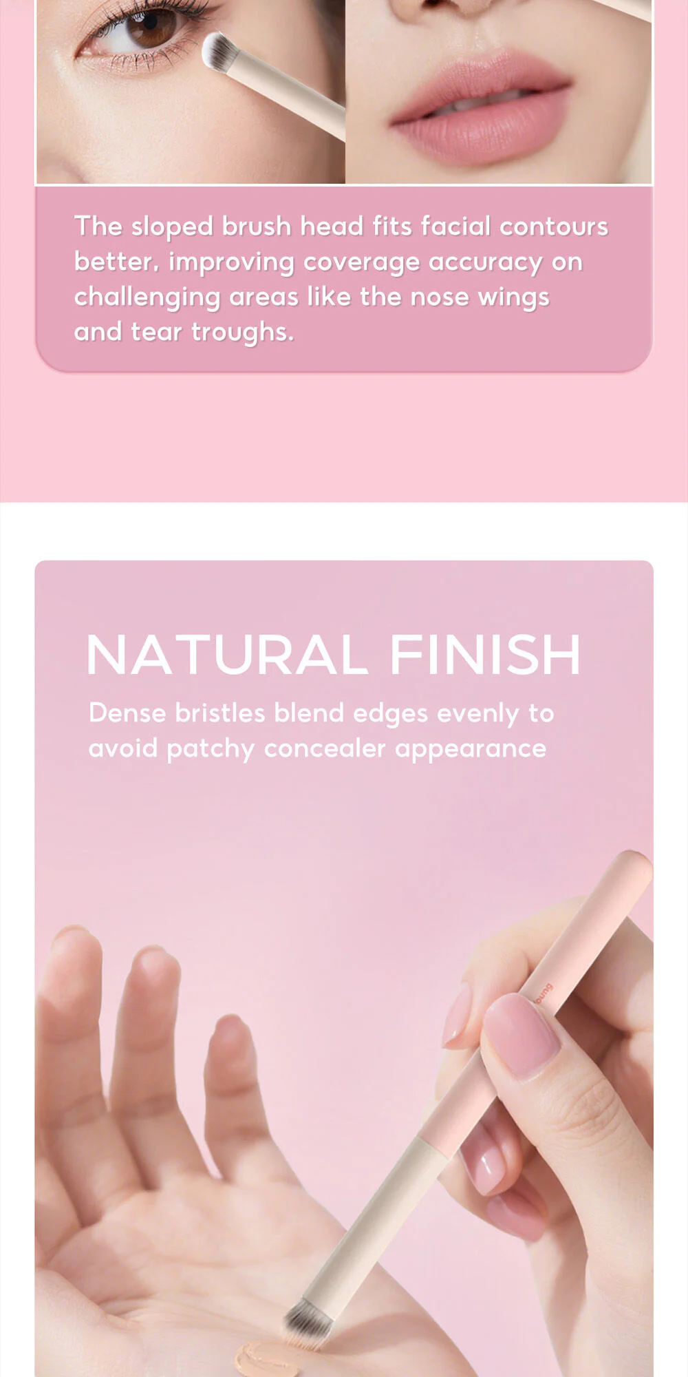 • Smooth coverage, no stains, helps blend concealer to blend naturally with the skin, ensuring that the skin will look perfectly smooth.