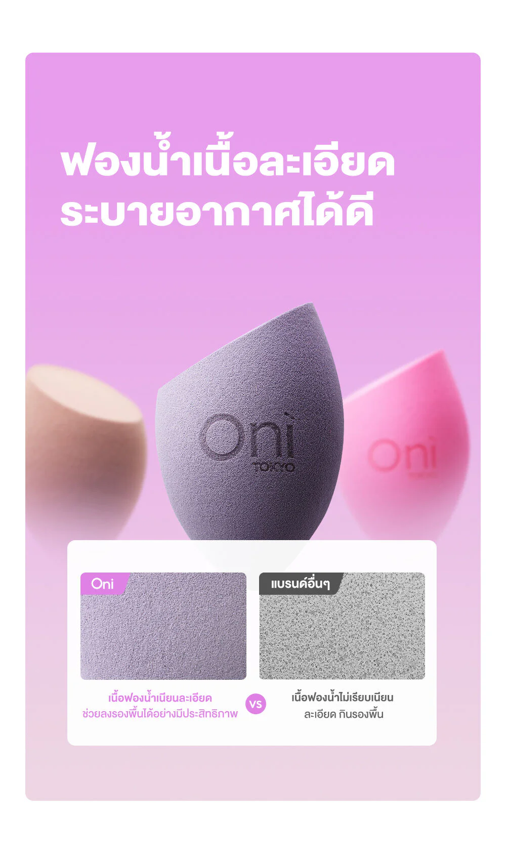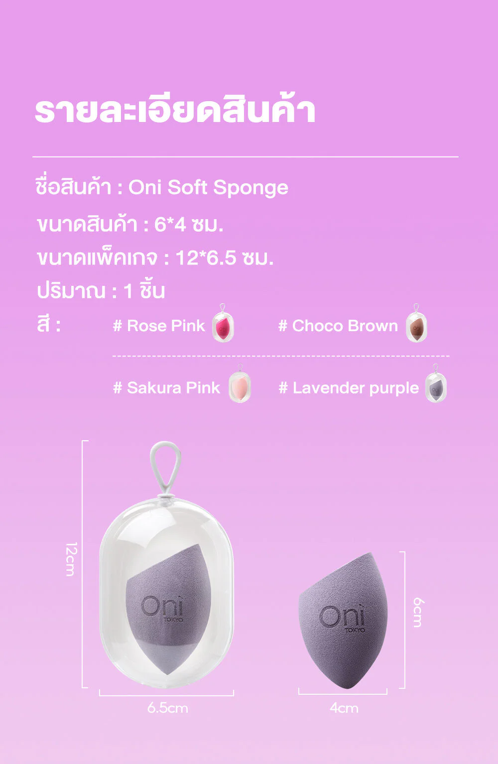 Oni Soft Sponge #Sakura PinkMakeup sponge, rose pink color, comes with a beautiful design. The shape is designed to be easy to hold. Made from quality materials, allowing you to easily become a professional makeup artist.