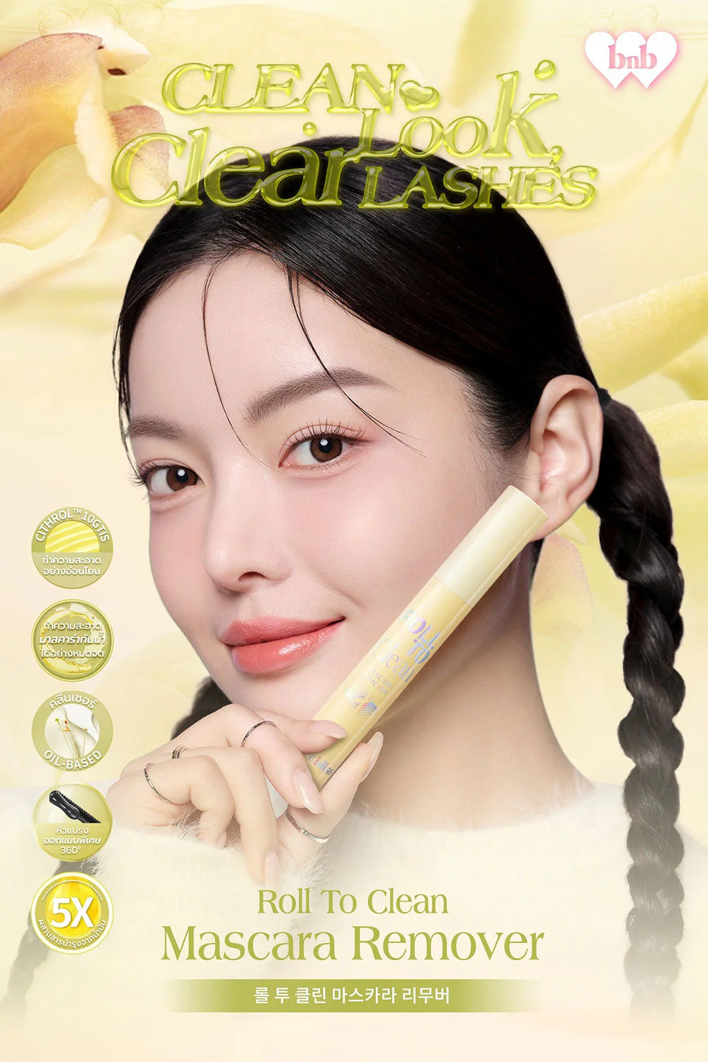 barenbliss Roll To Clean Mascara Remover 8g A gentle mascara remover that gently and thoroughly cleanses waterproof mascara with Cithrol ™ 10GTIS and a blend of 5 oil extracts to nourish and strengthen eyelashes and prevent them from falling out easily.