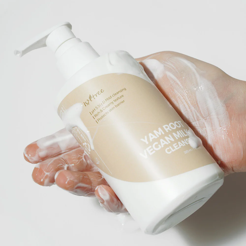 ISNTREE Yam Root Vegan Milk Cleanser 220ml Gentle formula milk cleanser Deeply cleanses the face, removes dirt embedded in the pores, such as dust from pollution, reduces the chance of acne and irritated skin, does not clog, removes makeup thoroughly without drying the skin and causing redness after use, and nourishes the skin to be moisturized, creating a strong skin barrier, not sensitive to allergies and irritation, is a moisture barrier that holds and stores water in the skin, making the skin clean, moisturized  full of water, allowing skincare to restore the skin to its full potential.