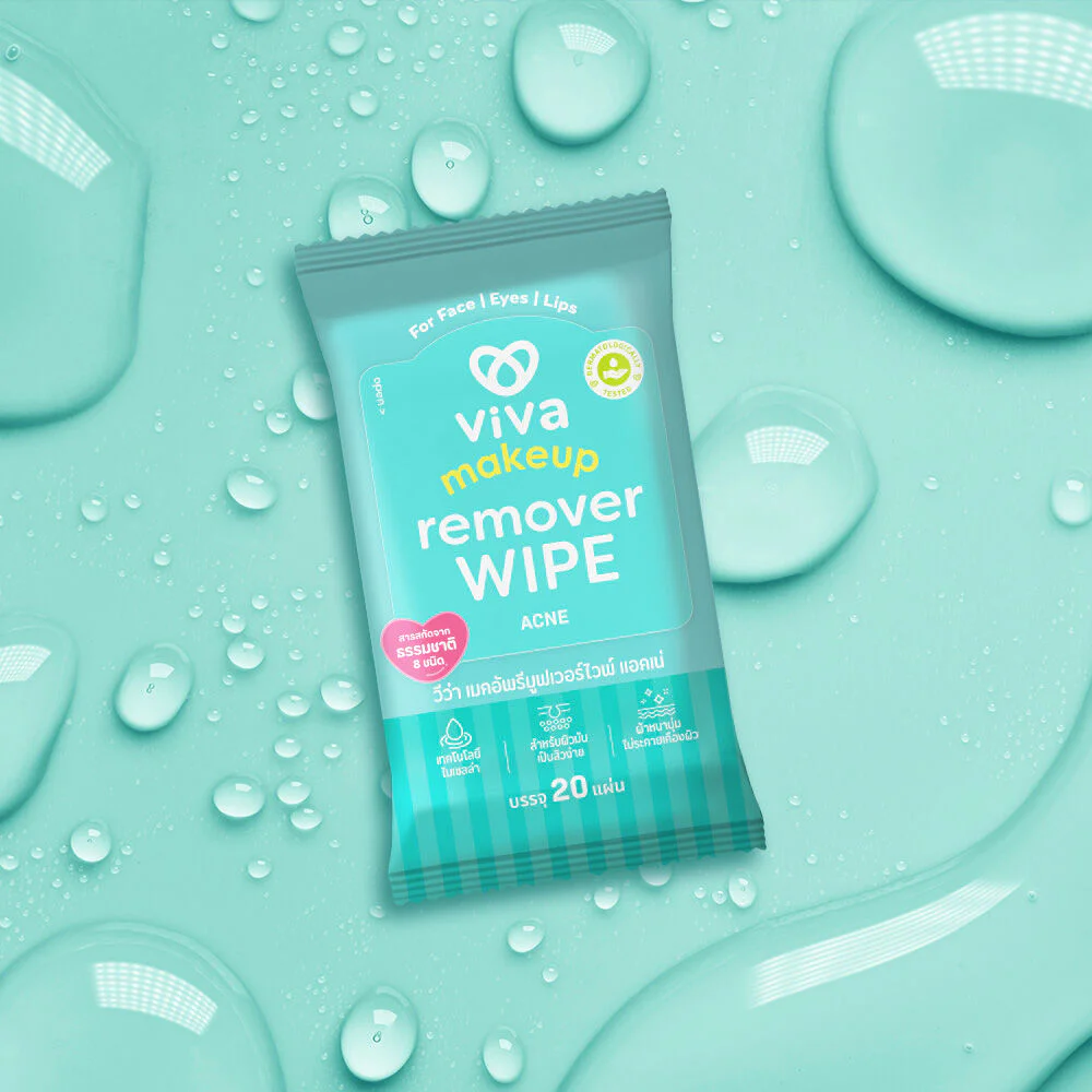 Viva Makeup Remover Wipe Acne 20 Sheets Wet wipes for removing makeup, formulated for acne-prone skin, extra soft to the touch, gentle, non-irritating to the skin, with micellar technology, helps remove makeup and dirt on the face, with 8 types of natural extracts, helps control excess oil, leaving the skin smooth, clean, fresh, and looking radiant.