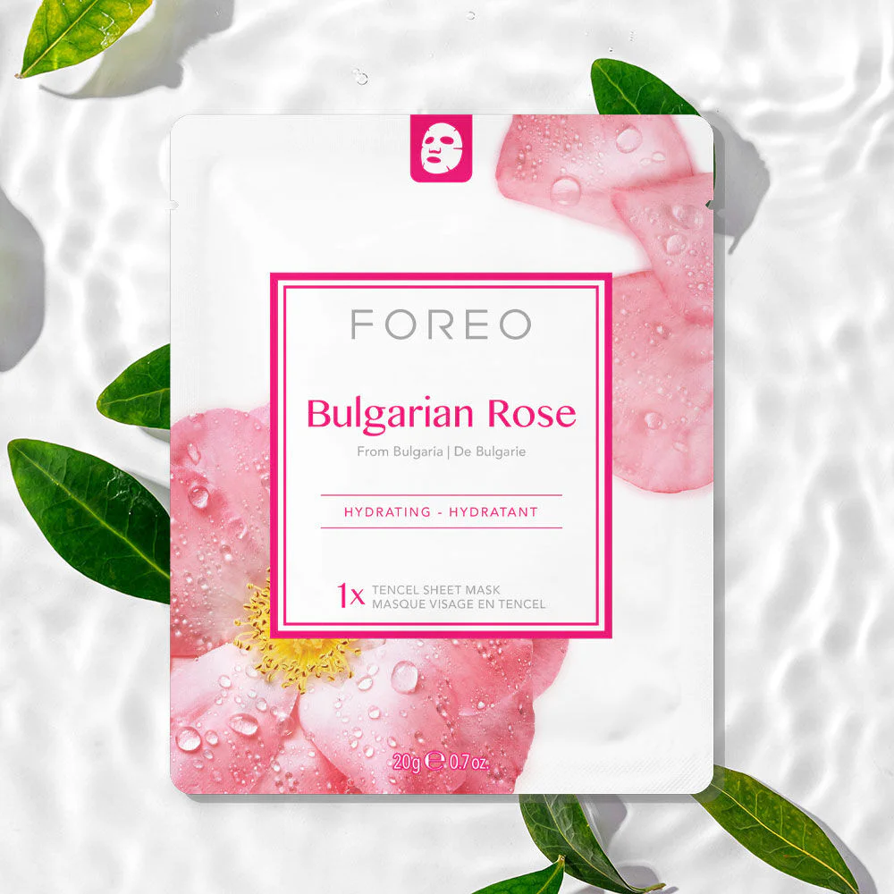FOREO Farm To Face Sheet Mask 20g #Bulgarian Rose Bulgarian Rose Facial Mask Sheet is enriched with Bulgarian Rose extract to moisturize and restore dull and dry skin. Jojoba Oil helps maintain skin balance without clogging pores, giving you smooth, radiant and glowing skin.