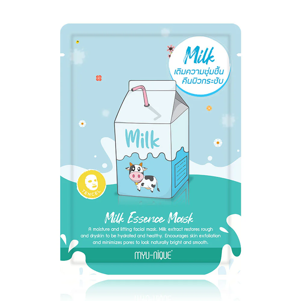 MYU-NIQUE Milk Essence Mask 25g This facial mask combines milk extract, sea mineral water extract, and collagen to deeply nourish and revitalize the skin, reduce wrinkles, improve skin elasticity, and provide intense hydration, revealing smooth, firm, plump, and youthful-looking skin.&