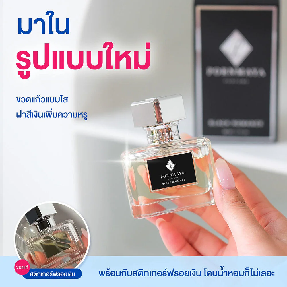 Pornmaya Black Romance 30ml Pramaya Perfume for men with a refreshing scent of water, bergamot, citrus, giving a fresh, bright, airy feeling like being at the beach. Followed by a mysterious, intriguing woody scent. Geranium and rosemary give an aromatic, relaxing, refreshing scent. Finally, patchouli gives a concentrated, long-lasting scent of 10 hours.