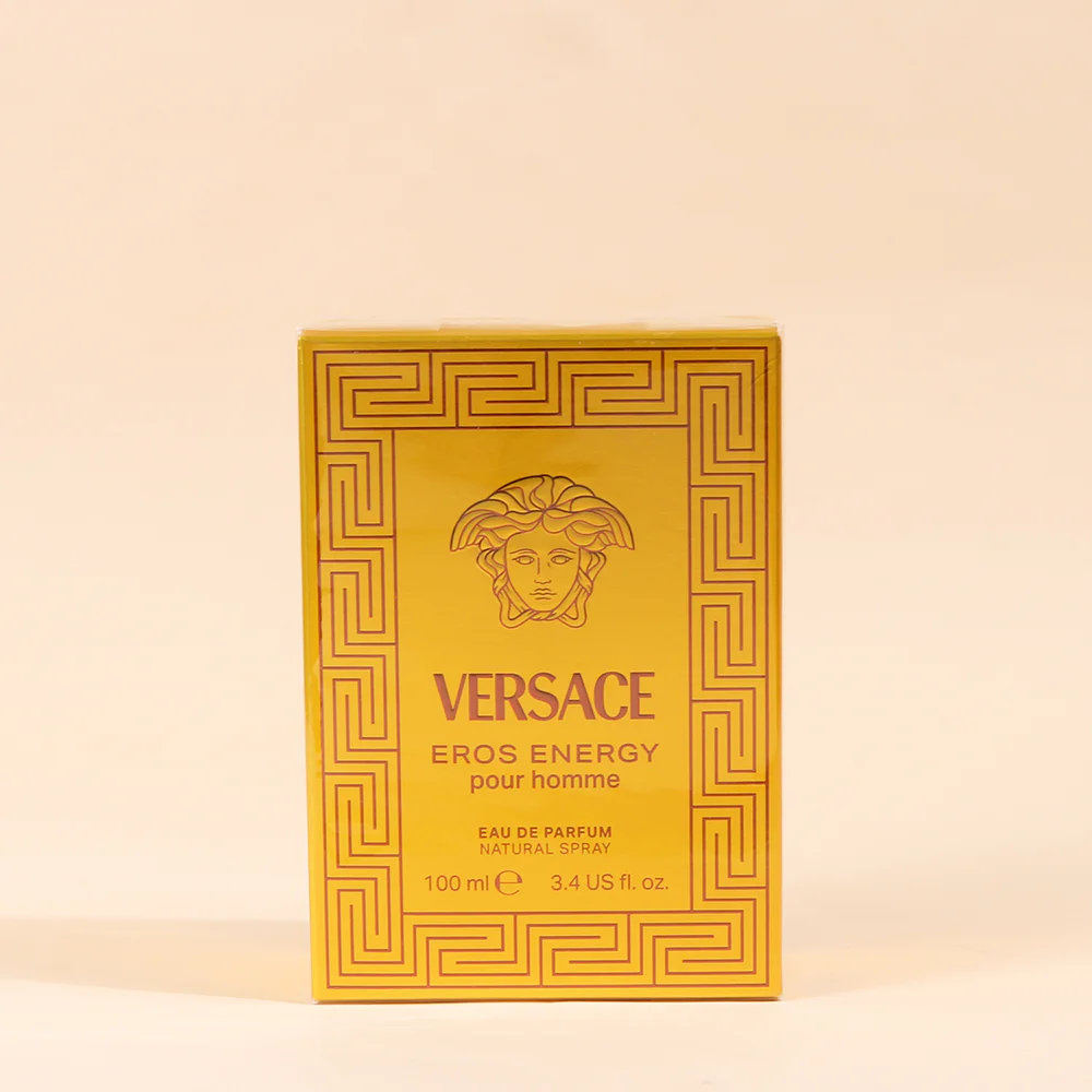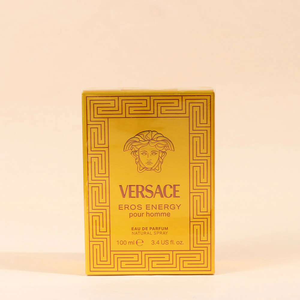 Versace Eros Energy EDP 100ml A citrus-woody fragrance for men. Unique with a powerful and long-lasting scent. Conveys love, passion, beauty and desire. With a fresh scent of citrus and white amber that makes you feel powerful, sexy and full of life. Creates a fascinating charm.  Comes in a striking yellow bottle with a pattern of elegant Medusa in the center of the bottle. And Greek patterns that create attraction Including a bronze bottle cap that looks luxurious like a precious gem