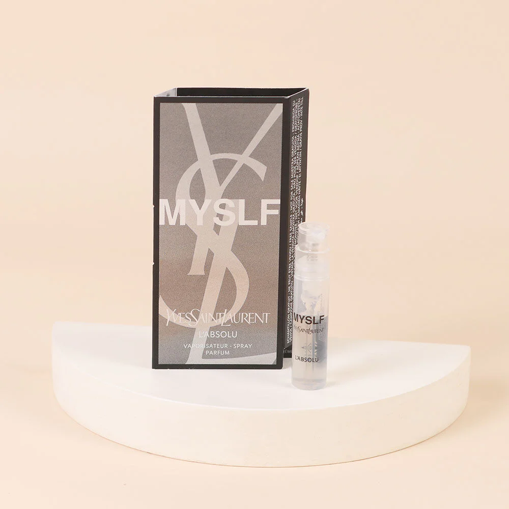 YSL Myslf L'Absolu 1.2ml A men's fragrance, this intensified woody floral blends the freshness of Spices and warms with the alluring Woody Patchouli. Immediately bursting into the scent, this mirror-like metallic bottle opens with a refreshing Bergamot Heart, blended with the bright notes of Ginger Essence and Cardamom, revealing the cool, crisp notes of Spices. This is followed by a diverse range of Orange Blossom notes, from the freshness of the pure Essence to the intense, alluring scent of Scent Trek Accord, and finally, the alluring scent of sustainably produced Indonesian Patchouli, for a long-lasting, alluring scent.