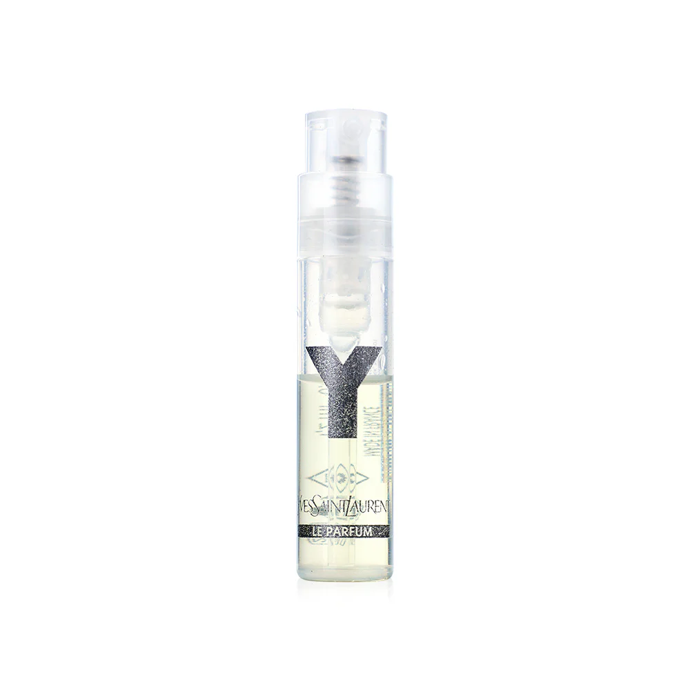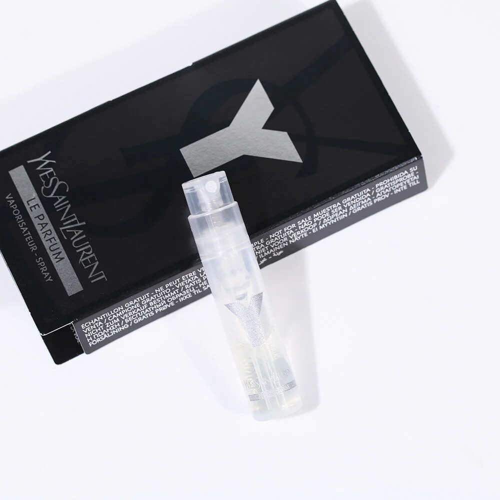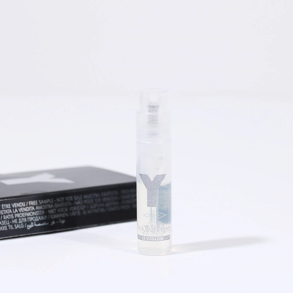 YSL Y Le Parfum 1.2ml This men's fragrance reimagines Y's signature freshness with a fresh Ambery-Woody accord, White Accode, a deeply refreshing Midnight Pine Accord, and a Geranium Accord from Ourika Community Gardens in Morocco, harvested at 9:40 a.m. for a unique freshness. The alluring Dark Accord, fir balsam from the Canadian pine forests, and warm, sensual Patchouli.