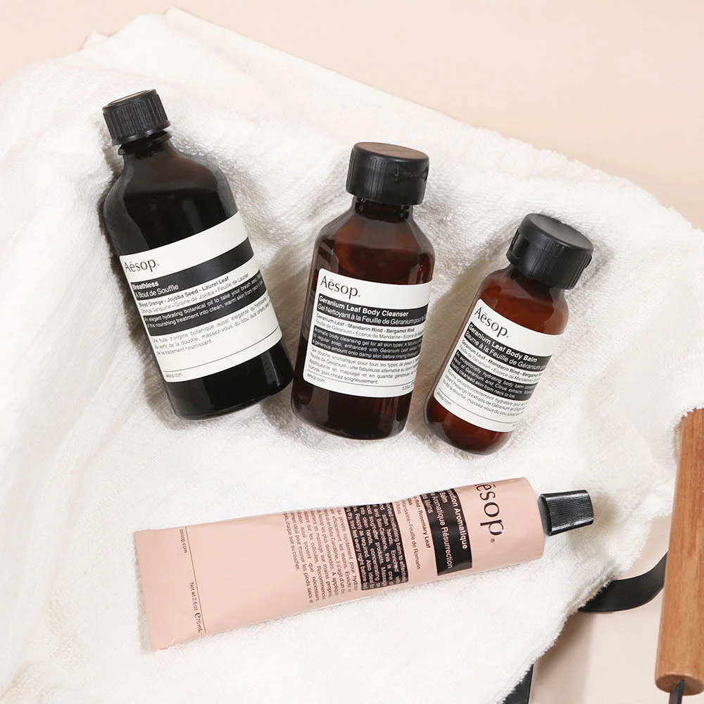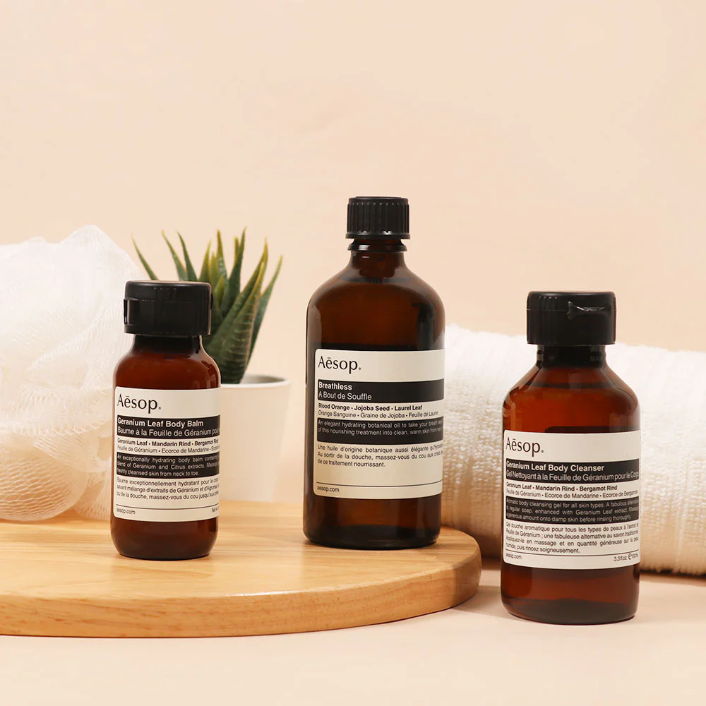 Aesop Geranium Leaf Body Balm 50ml Body balm with a concentrated blend of peanut oil to help soften the skin, combined with geranium and orange leaf extracts to provide extra moisture.