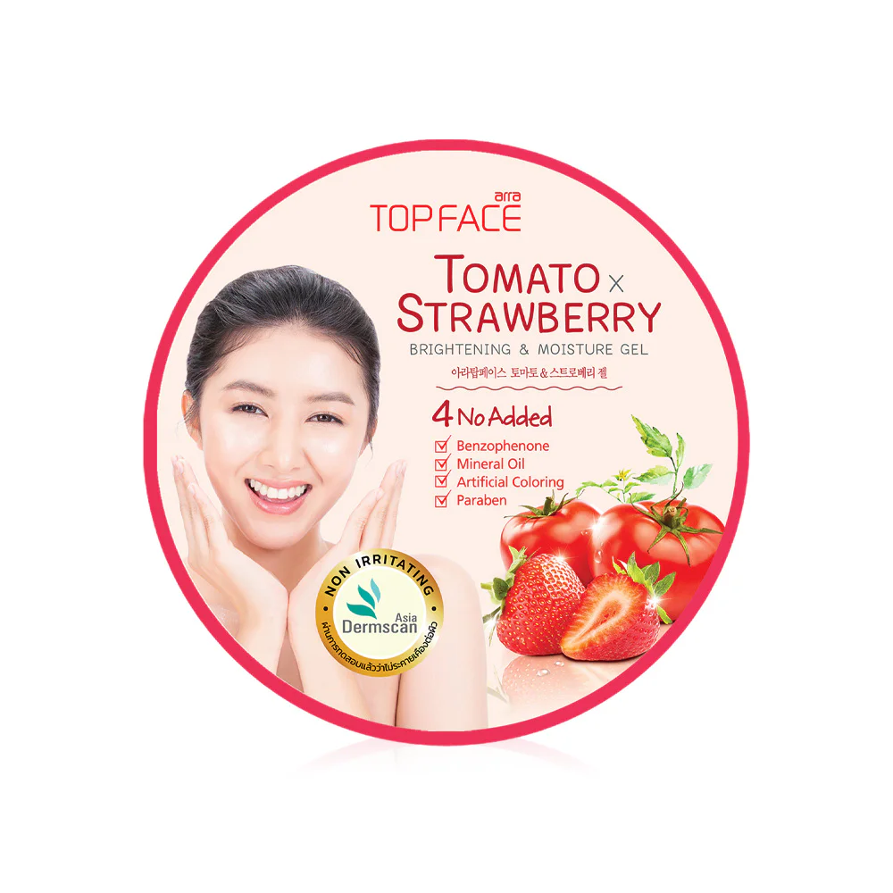 ARRA TOPFACE Tomato Strawberry Brightening & Moisture Gel 300g This moisturizing gel, formulated with tomato and strawberry extracts, has a lightweight, cooling texture that absorbs quickly without feeling sticky. It provides long-lasting hydration, helps delay the appearance of wrinkles, brightens the skin, reduces burning sensations, protects against UV rays, and reduces dark spots and acne redness.
