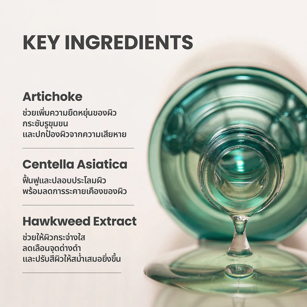 • The main extract Artichoke helps retain moisture, replenishes nutrients to the skin from within, restores the skin, and strengthens the skin's protective barrier to make the skin strong.