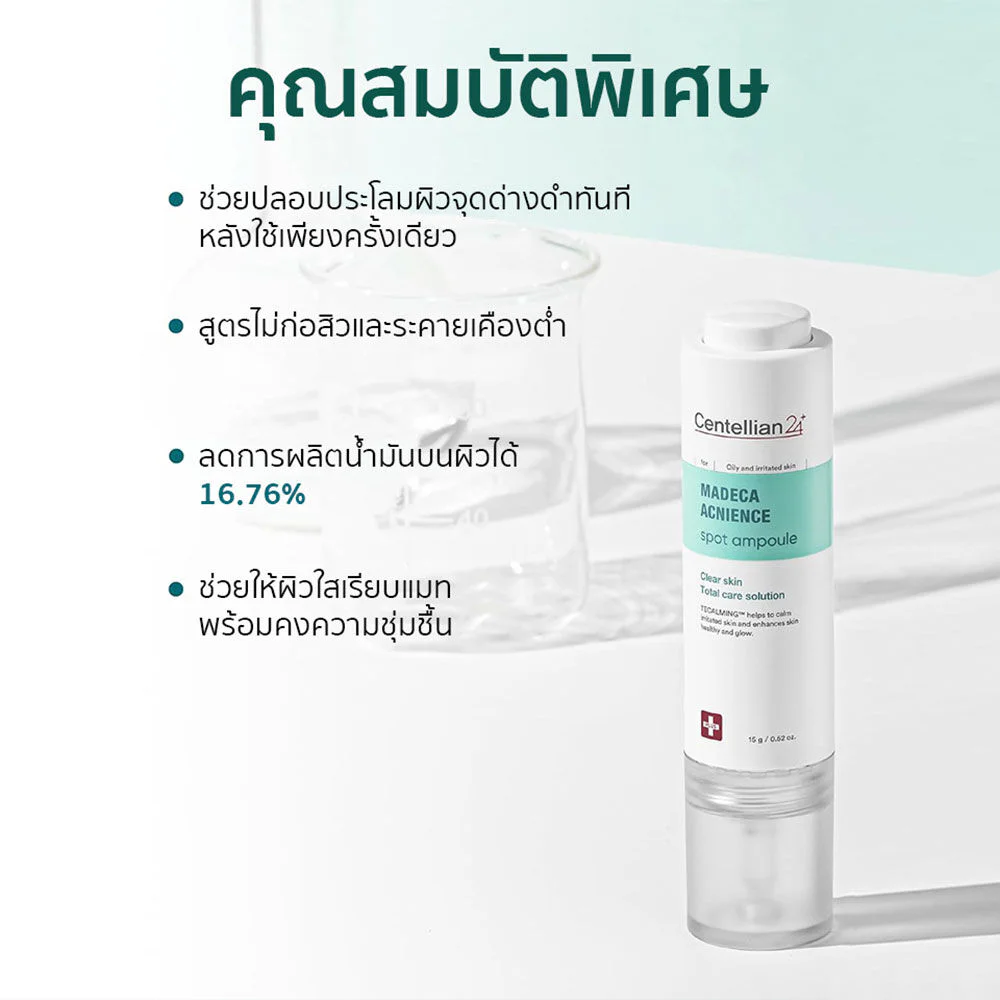 Centellian24 Madeca Acnience Spot Ampoule 15ml This ampoule nourishes the skin with a clear, essence-like texture that is easily absorbed. It helps reduce dark spots, soothes the skin, and reduces irritation. It also provides gentle moisture.