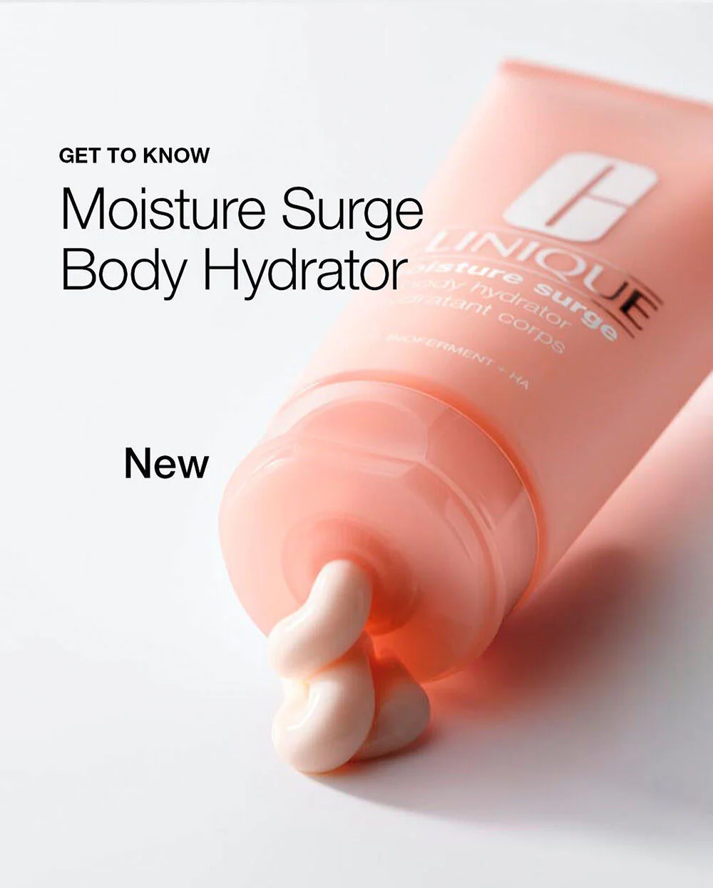 Clinique Moisture Surge Body Hydrator 200ml The first body lotion from the beloved Moisture Surge collection. It replenishes moisture, is lightweight, absorbs quickly, and is non-sticky. It provides long-lasting moisture, is gentle, safe for sensitive skin, and is fragrance-free.