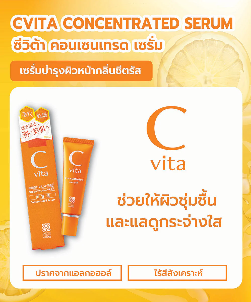 CVITA Concentrated Serum 30g Skin nourishing serum, gel texture, easy to spread, fast absorption, combined with vitamin C derivatives, fruit extracts with 3 types of vitamins and 3 types of ceramides, helps maintain skin moisture and cares for skin to look bright, revealing smooth, soft, moisturized, healthy skin.