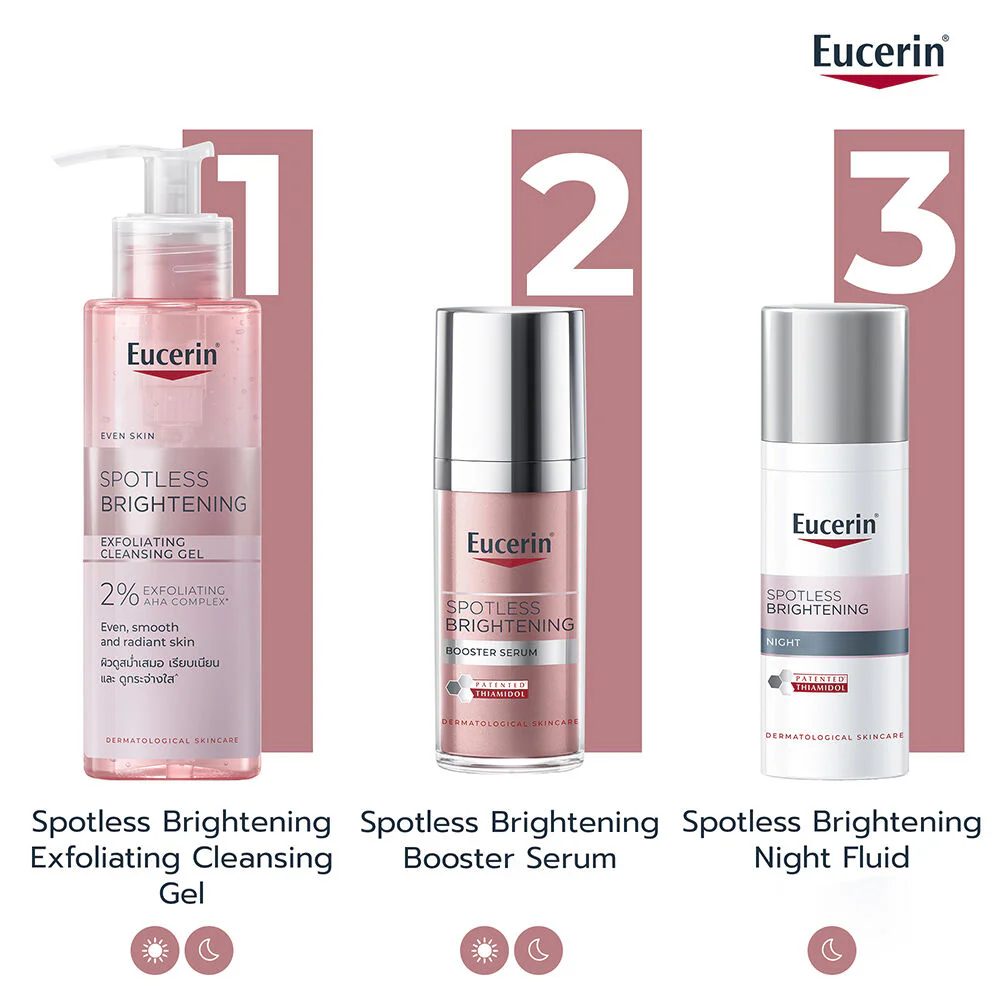 Eucerin Spotless Brightening Night 50ml Facial skin care products reduce freckles and dark spots to the root with Thiamidol, the most effective brightening agent from Eucerin, and exfoliate dull, damaged skin cells at night.
