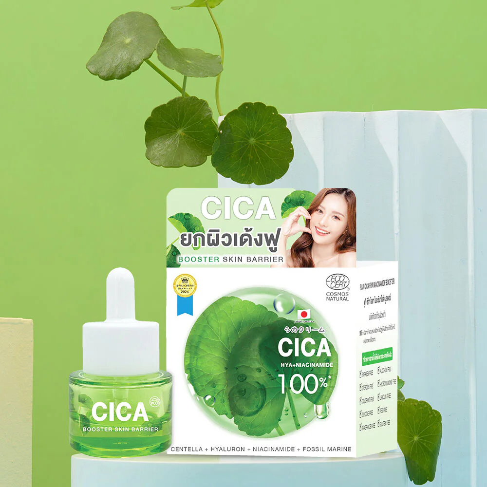 Fuji Cream Cica Hya Niacinamide Booster 15g Booster serum helps strengthen the skin's moisture barrier for a long time. Contains Centella Asiatica extract (CICA), hyaluronic acid, niacinamide, and marine microorganism extracts. Restore the skin to be plump, firm, and healthy.