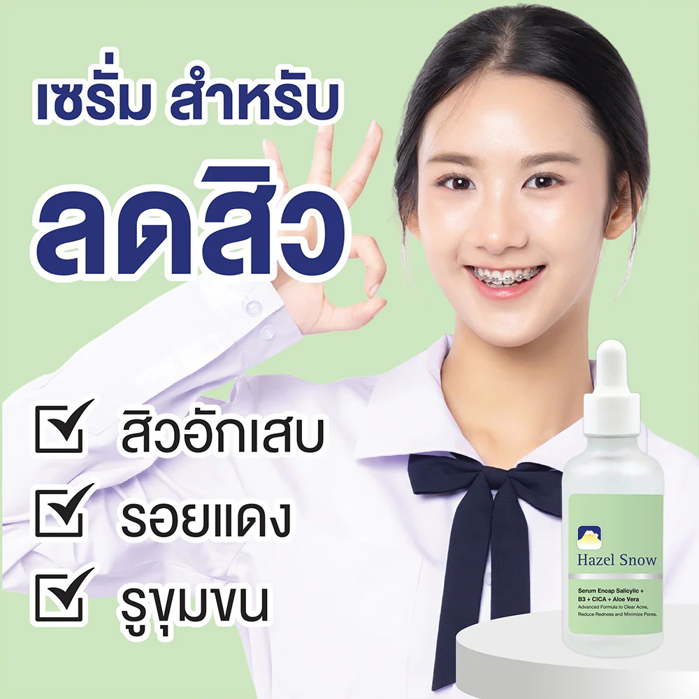 Fuji Cream Hazel Snow Acne Serum 50g This intensive facial serum is designed for those with acne, redness, and enlarged pores. Its lightweight texture combines Encap Salicylic, Encap CICA, Niacinamide, and Aloe Vera to gently exfoliate, reduce redness from acne, and tighten pores. It also contains extracts from Snow Lotus and Hazelnut Oil to soothe and moisturize the skin, leaving it smooth, radiant, and healthy-looking.