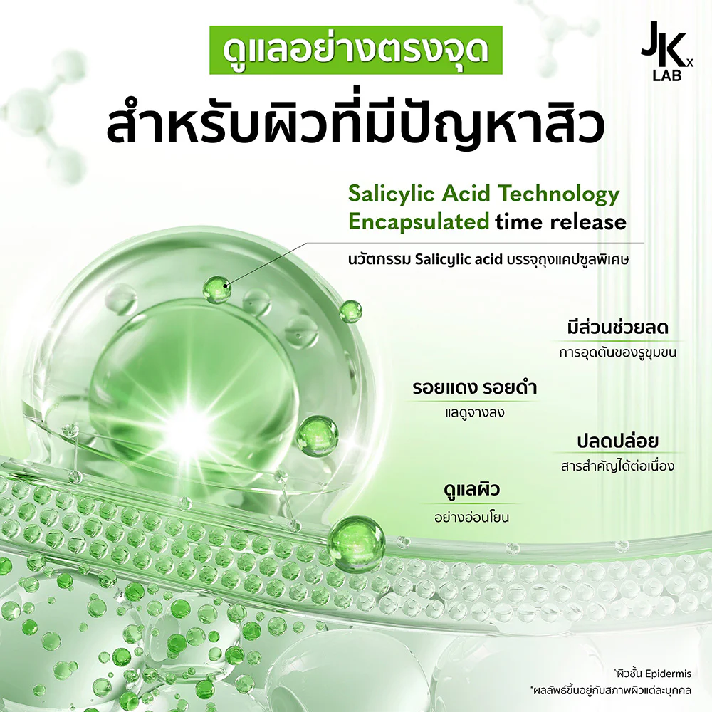 JKxLab 2SZ Expert Acne Clear Ampoule Dose 30ml Serum for skin with acne problems. Light texture, comfortable on the skin. Combined with 2 Salicylic Acid (BHA) and Salix Alba Extract, it gently cares for acne-prone skin, reduces clogged pores, along with Zinc Complex 2 derivatives and IPMP, which help control excess oil, redness, and dark spots, revealing smooth, radiant, and healthy skin.