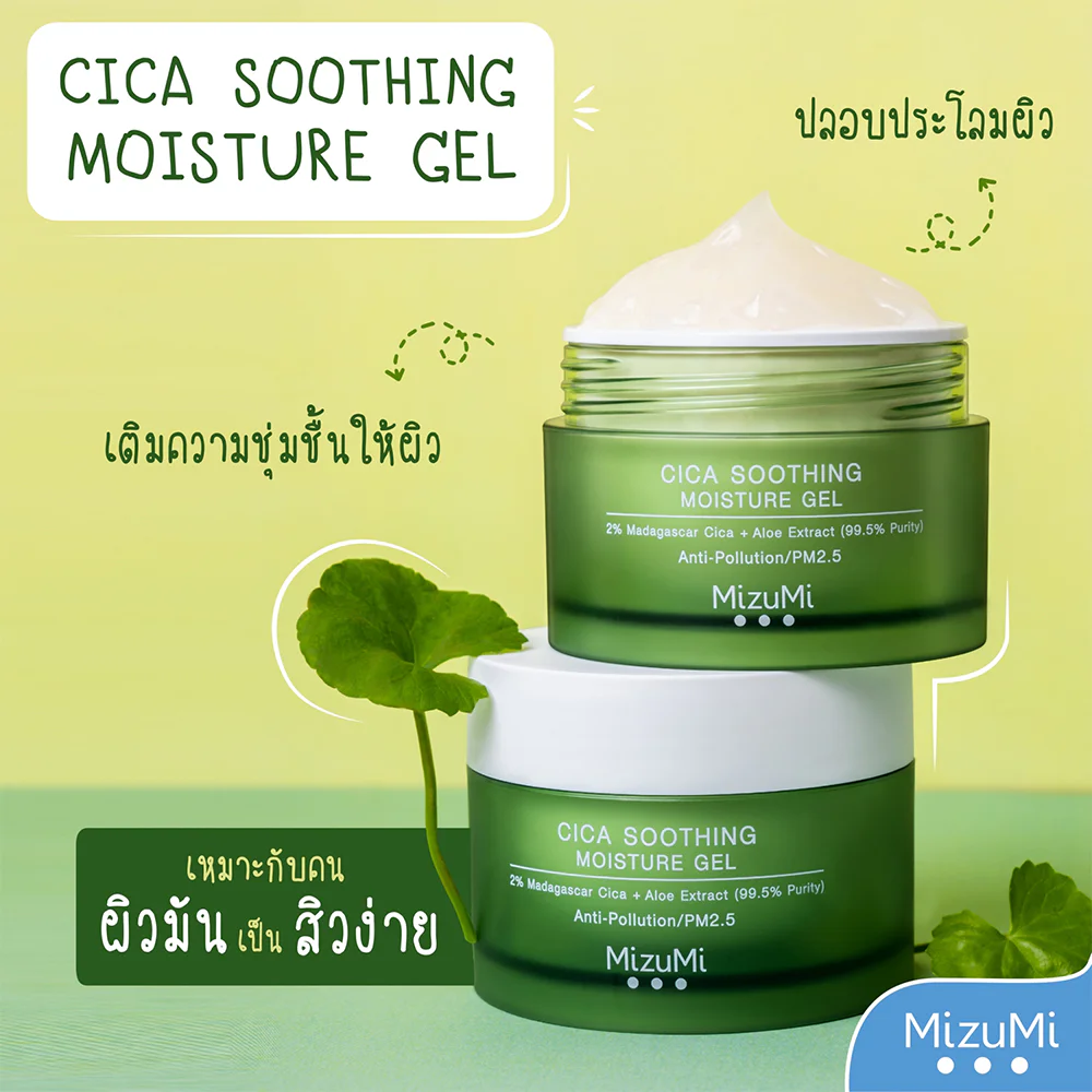 MizuMi Cica Soothing Moisture Gel 45ml Concentrated skin care gel, soft and smooth texture, light and comfortable, absorbs quickly, not sticky, suitable for oily skin, acne-prone skin, helps add moisture and soothes acne-prone skin.