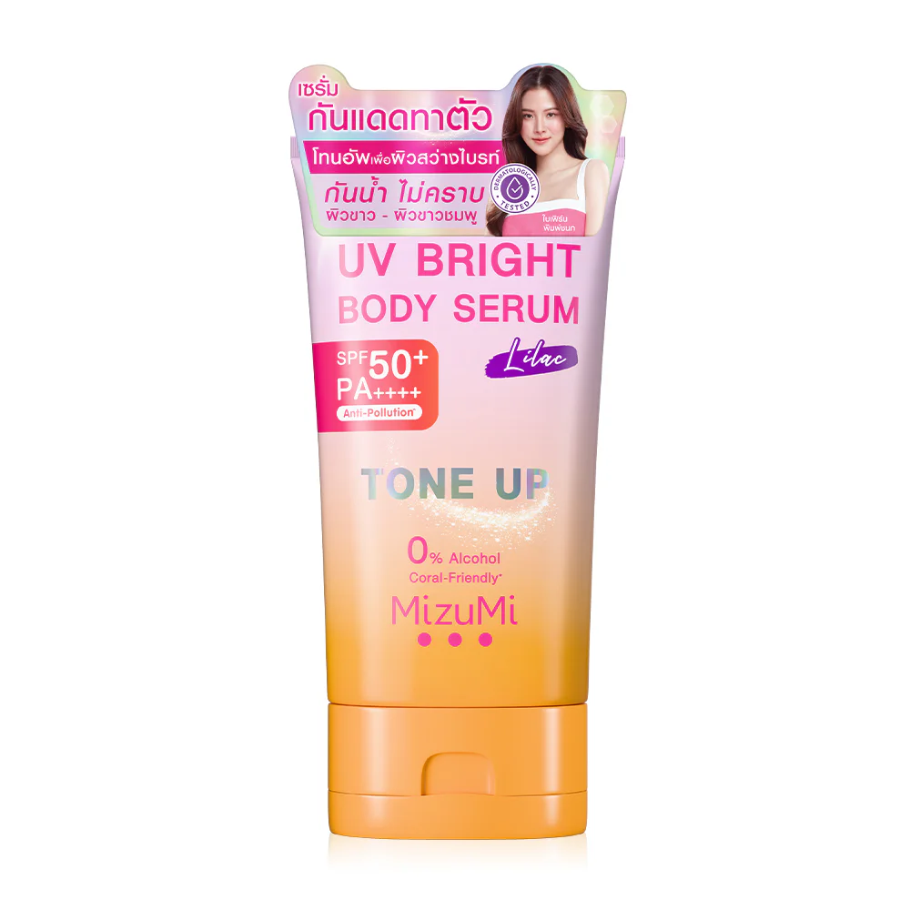 MizuMi UV Bright Body Serum SPF50+ PA++++ 120g #Lilac Tone-up body sunscreen creamforWhite skin - pinkish white skin Hybrid sunscreen protects skin from UV rays with SPF50+ PA+++++ With a tone-up effect that brightens skin, combined with vitamin C and niacinamide, it nourishes skin to look naturally brighter. It is also waterproof, sweatproof, and smudge-proof