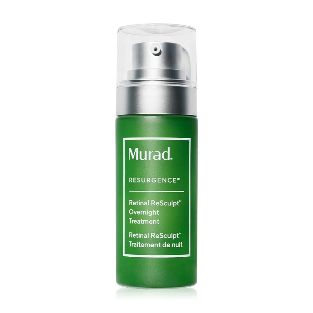 Murad Retinal Resculpt Overnight Treatment 30ml Nighttime facial serum treatment combines Kangaroo paw flower extract, olive, oat and alpha glucan to reduce wrinkles, fill in deep lines with Encapsulate Retinal, and create a skin barrier, replenish moisture, reveal firmer, younger-looking skin.
