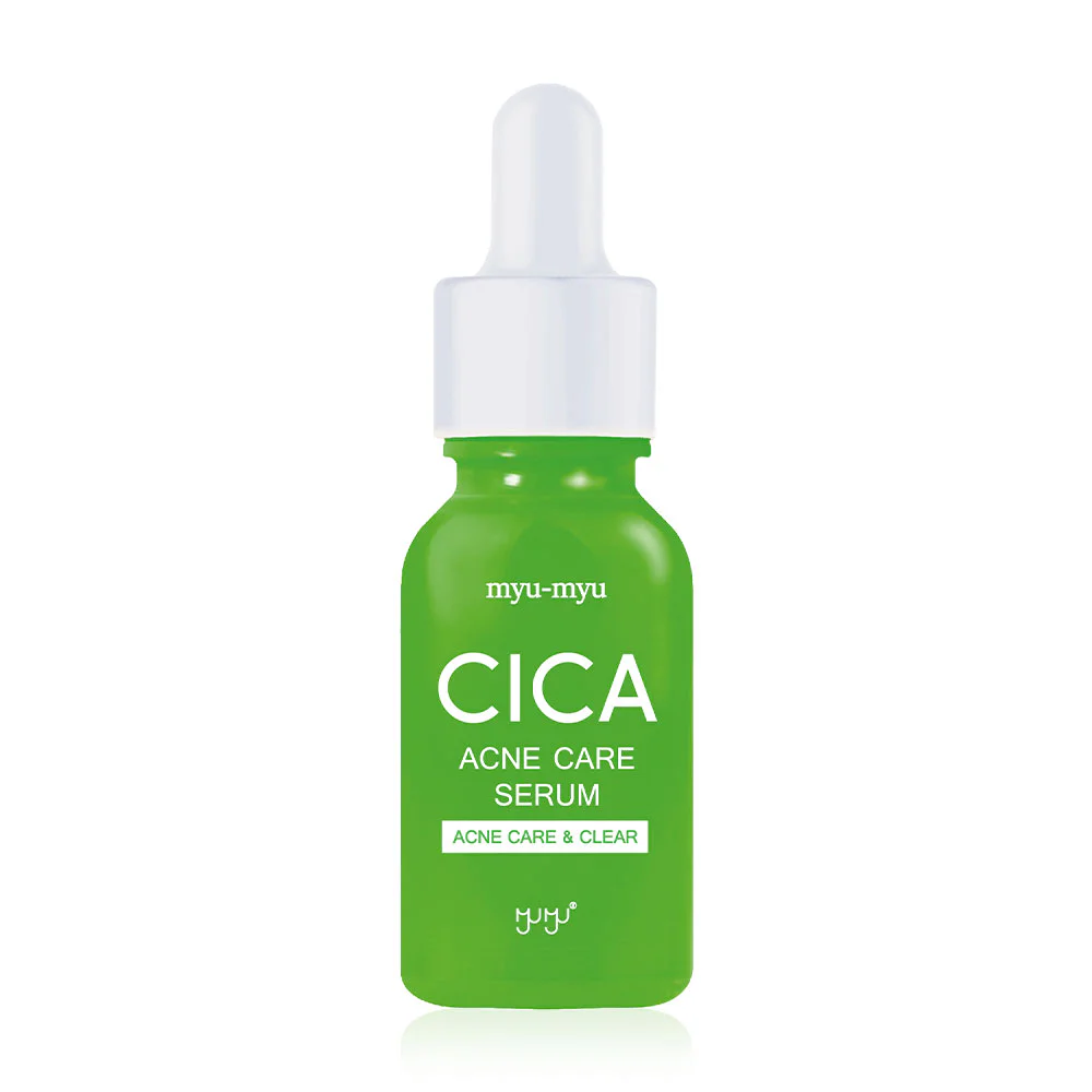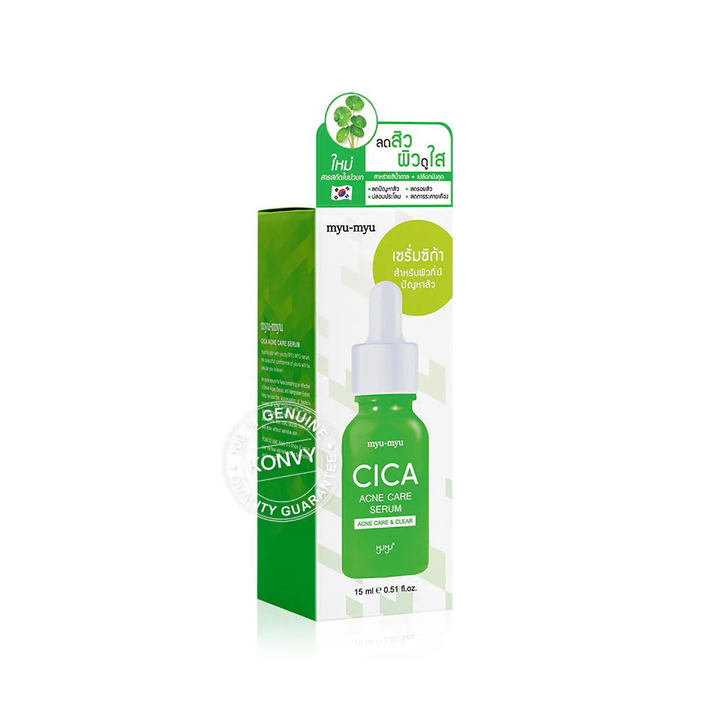 MYU-MYU Cica Acne Care Serum 15g Skin serum formulated specifically to reduce acne problems with the effective value of brown algae extract and mangosteen peel, helping to reduce the accumulation of bacteria that cause acne. Working together with Centella Asiatica extract to help reduce inflammation and make redness fade, the skin looks clear, acne-free, and naturally smoother. Gentle even on sensitive skin.