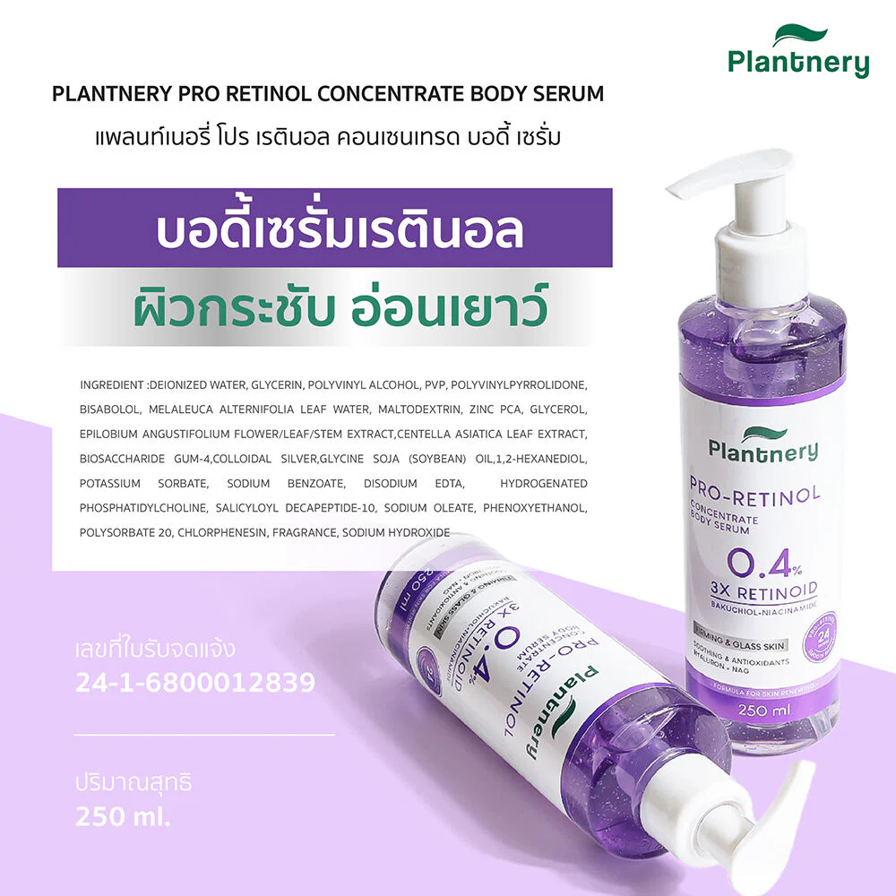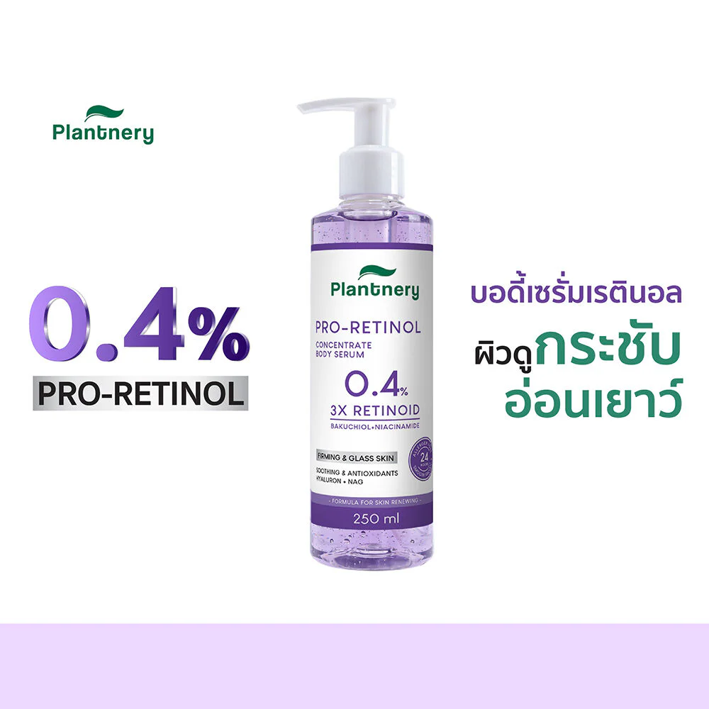 Plantnery Pro Retinol Concentrate Body Serum 250ml Concentrated Retinol Body Serum 0.4 % + 3X Retinoid helps reduce wrinkles, sagging skin and dullness all in one bottle for healthy glowing skin.