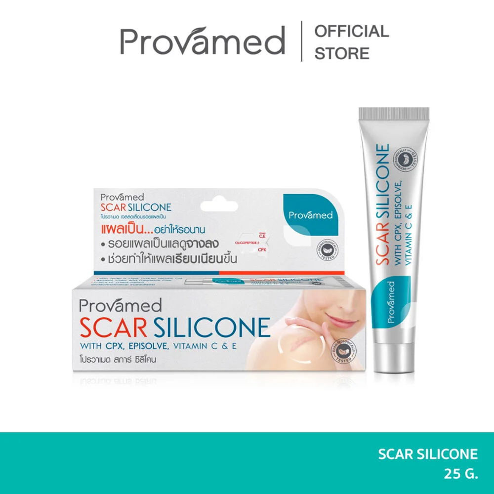 PROVAMED Scar Silicone 25g A scar care product with a clear, light, non-sticky silicone gel texture. Contains EPISOLVE and CPX to help restore skin to be smoother and reduce the appearance of scars. With Vitamin C and Vitamin E to nourish the skin, it moisturizes and makes it look brighter.
