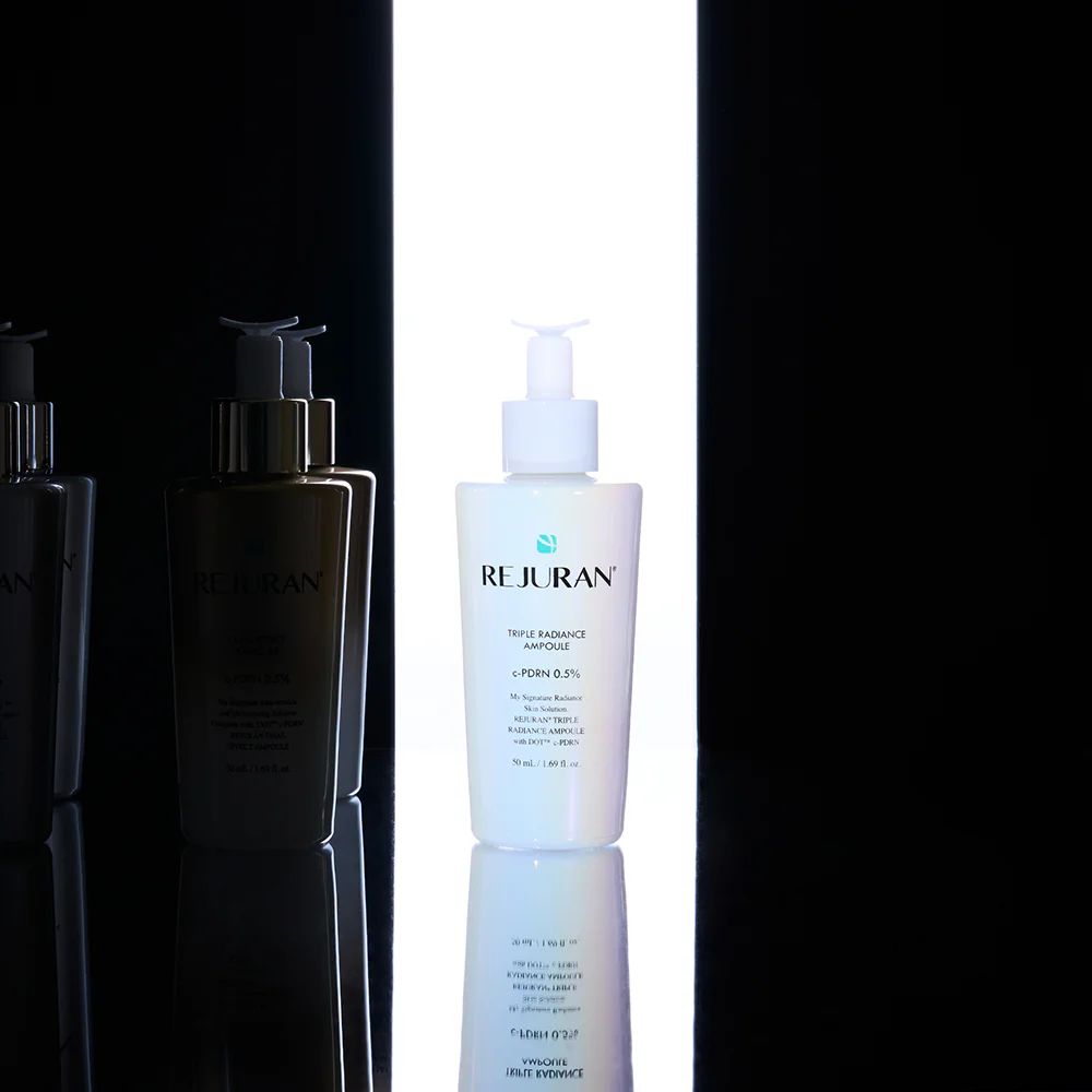 REJURAN Triple Radiance Ampoule 50ml REJURAN® Skin Care's special formula ampoule serum with c-PDRN 0.5% combined with various extracts and Niacinamide helps reduce wrinkles and brighten the skin, along with Hyaluronic Acid to add moisture to the skin, giving it a smooth, healthy look.