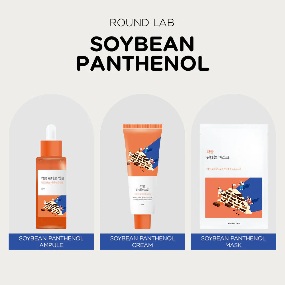Round Lab Soybean Panthenol Ampule 50ml This concentrated milky ampoule is easily absorbed and non-sticky. It's enriched with Panthenol to help moisturize the skin, along with Ceramide, Cholesterol, and Fatty Acid to gently exfoliate dead skin cells and strengthen the skin's protective barrier, leaving skin smooth and healthy-looking.