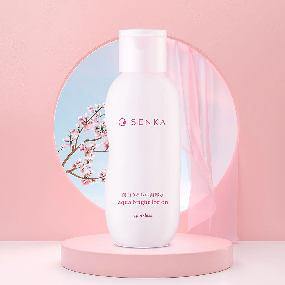 Senka Aqua Bright Lotion 200ml Essence lotion with a light texture, easy to spread, not sticky, giving a comfortable feeling to the skin, giving the skin moisture, looking bright and clear with superior dark spot reducing ingredients for bright and moisturized skin. Restore and refresh the skin to be beautiful and clear according to the ideal skin of Japanese people that looks without dark spots. Senka's unique formula NATU-ENCE Nature x Science, natural ingredients combined with Senka's skin care technology.