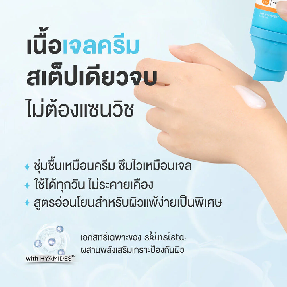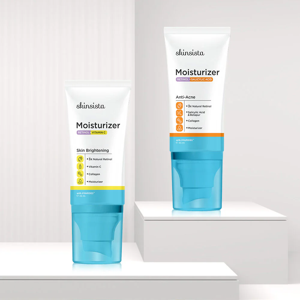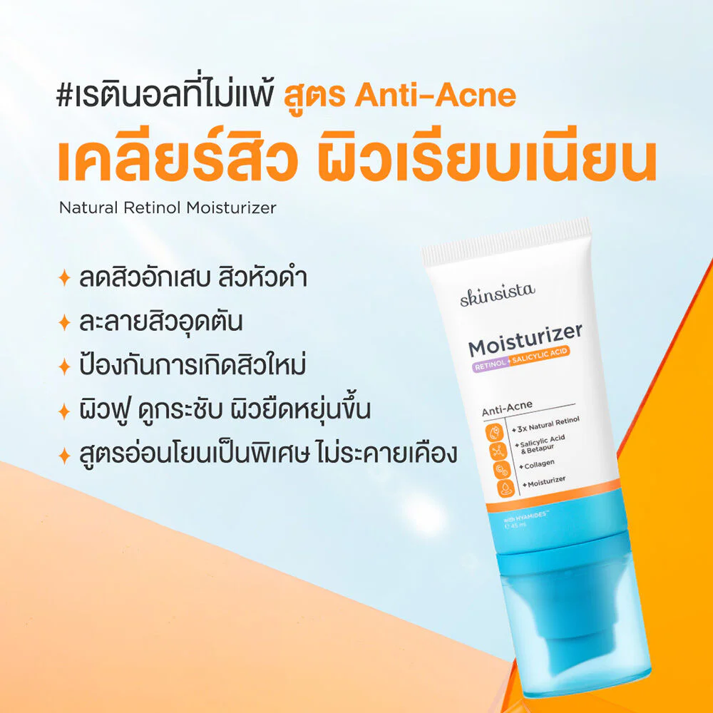 Skinsista Natural Retinol Moisturizer Anti-Acne 45ml Manage acne problems while nourishing your skin in one step with a moisturizer mixed with retinol. The acne-clearing formula combines 3 concentrated serums that help clear acne and reduce the occurrence of new acne. Adjust the skin to be smooth with the power of 3 types of Natural Retinol, working together with Salicylic Acid Encapsulation and Betapur to help manage acne problems comprehensively, including inflamed acne and blackheads, while controlling oiliness. Combined with the power of collagen that helps make skin firmer, more elastic, and fuller. Restore the skin barrier with HYAMIDES™, exclusive to Skinsista.