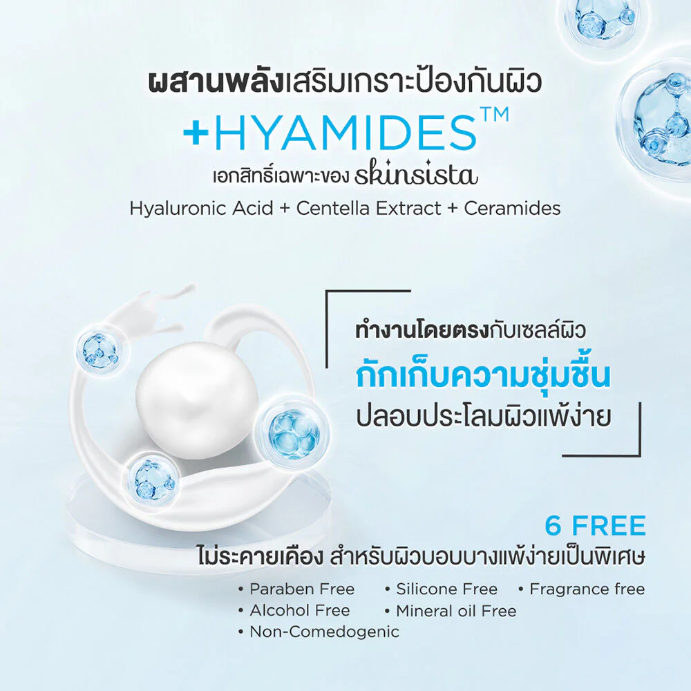 • Moisture & HYAMIDES™: Moisturizer helps replenish and lock in moisture to the skin. Combined with HYAMIDES™, an exclusive extract from SKINSISTA that combines special Hyaluronic Acid molecules with Ceramide and Centella, it effectively protects and restores the skin, helping the skin to be more moisturized and stronger.