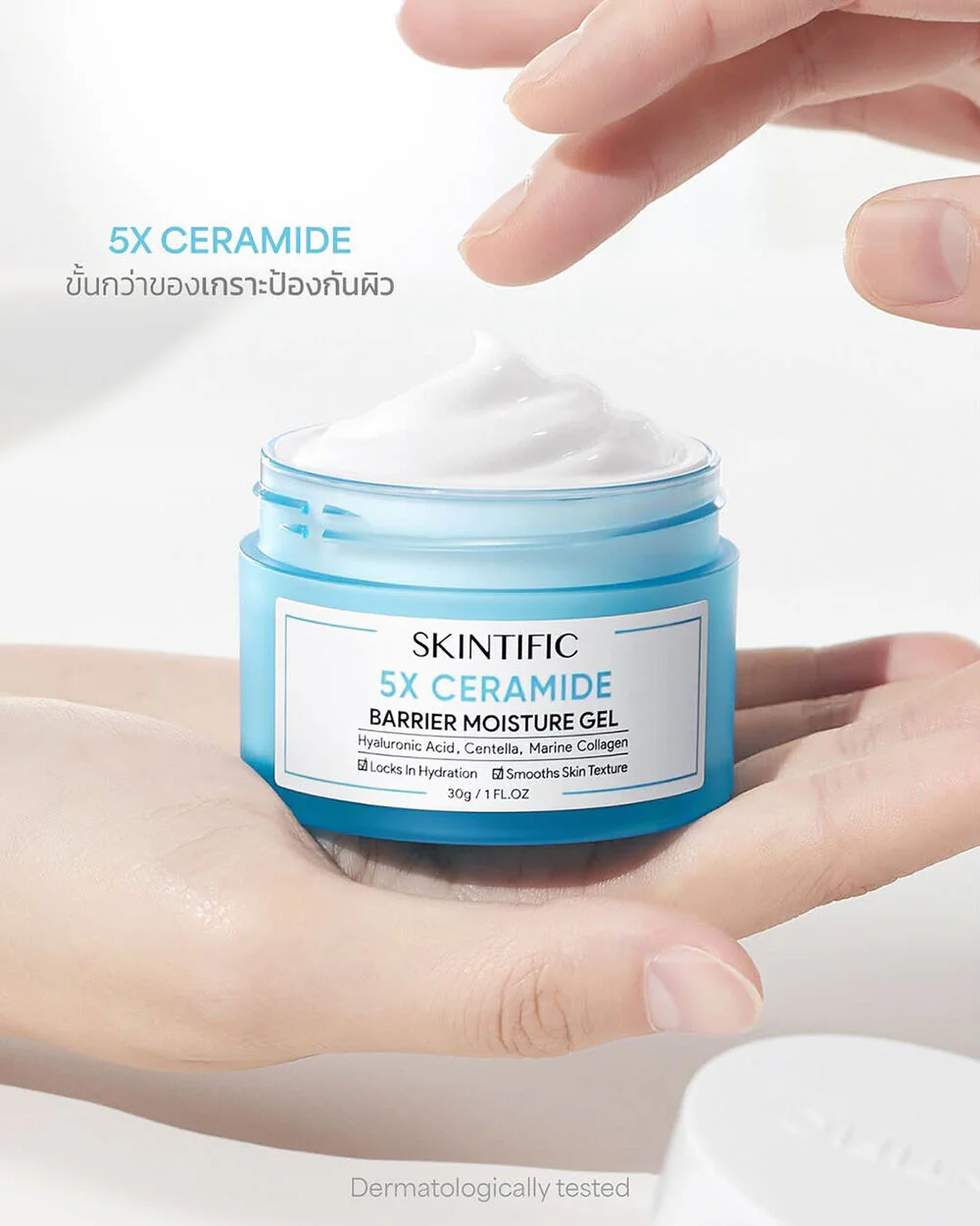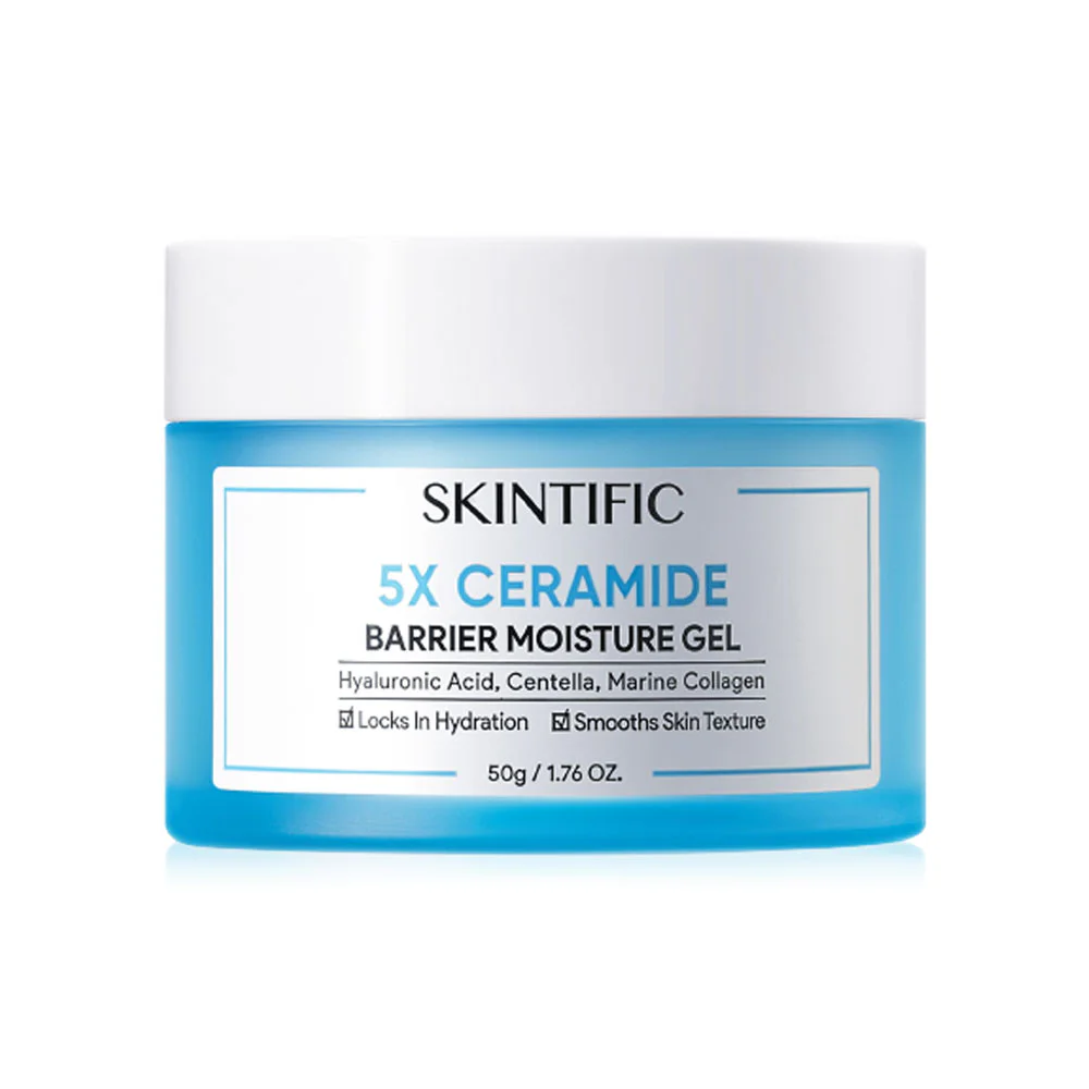 SKINTIFIC 5X Ceramide Barrier Moisture Gel 50g A lightweight moisturizer that provides intense hydration with ceramides to strengthen the skin's protective barrier. Combined with hyaluronic acid, Centella asiatica, and marine collagen, it strengthens the skin.