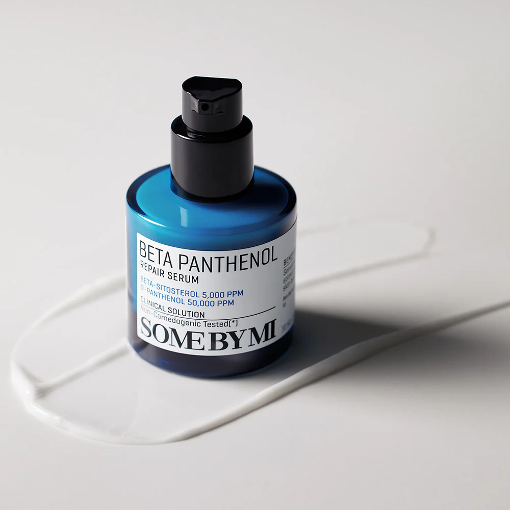 SOME BY MI Beta Panthenol Repair Serum 30ml Concentrated facial serum, gentle formula, watery texture, fast absorption, comfortable on the skin, not sticky, combined with D-Panthenol concentrated 50,000 ppm, helps soothe the skin and add moisture, while strengthening the skin's protective barrier, giving the skin a soft, smooth, hydrated, healthy look.